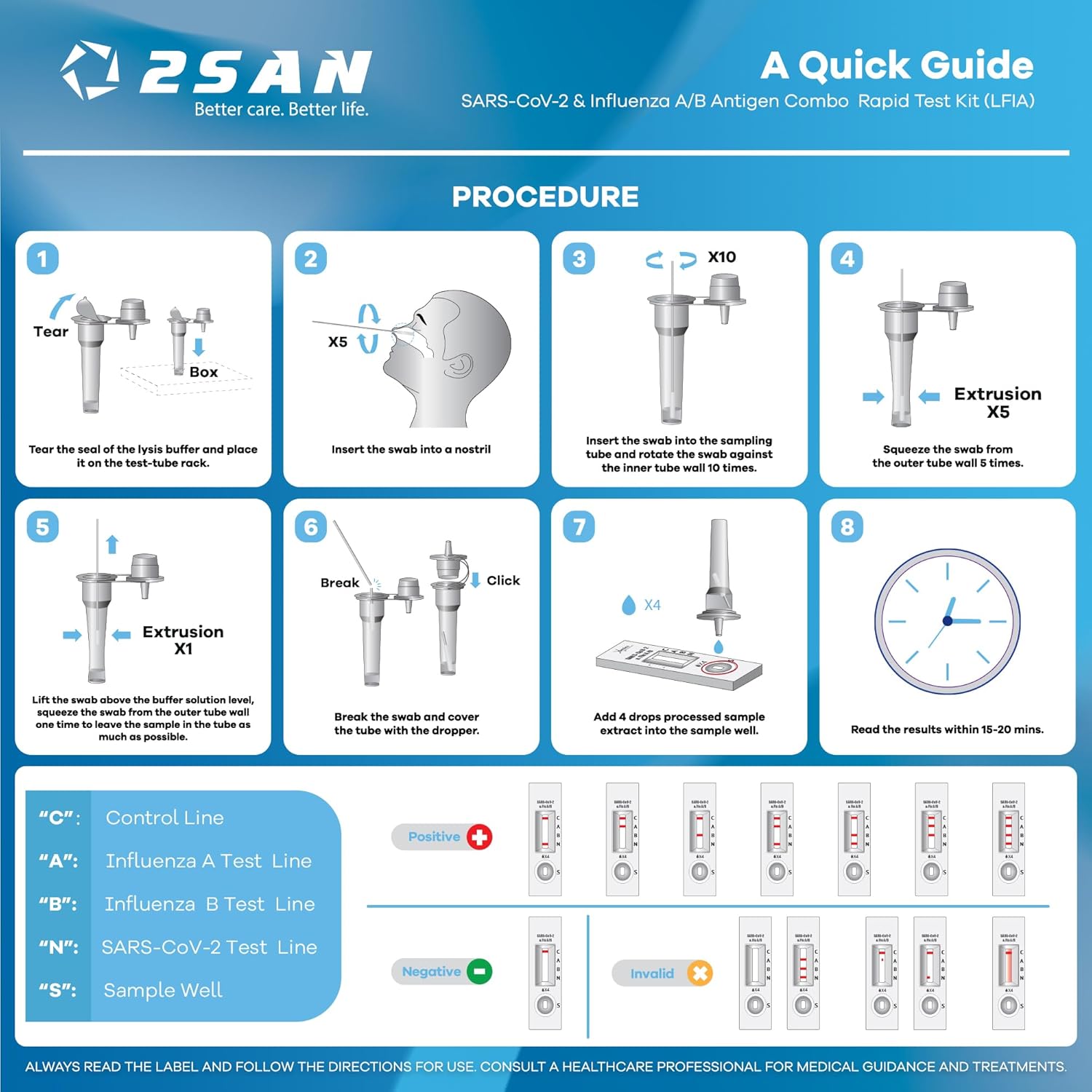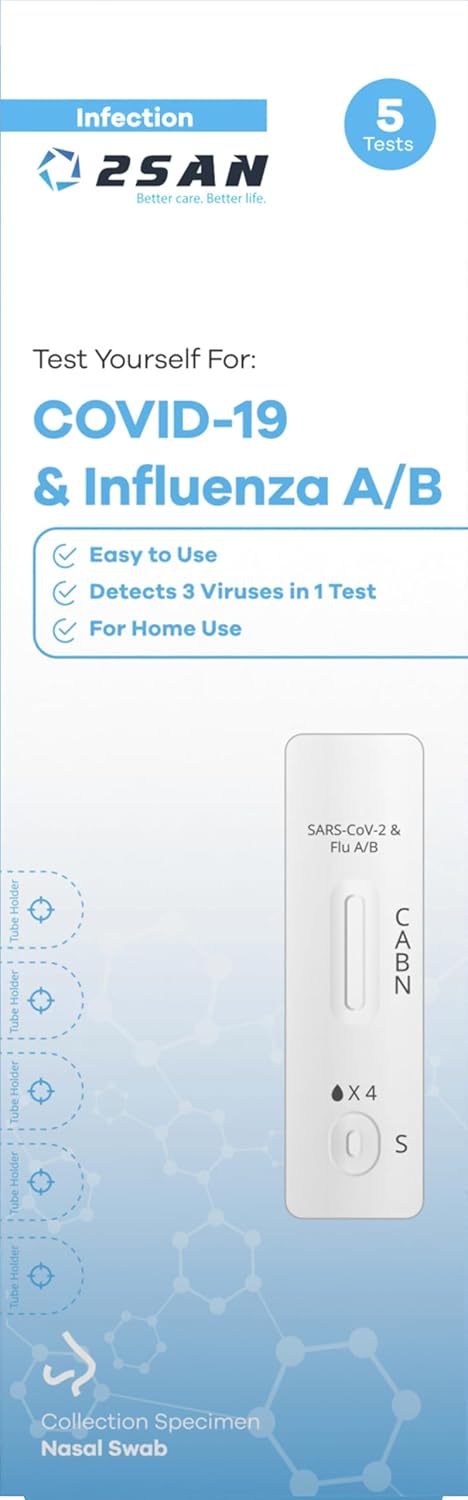 2San COVID-19 and Flu A/B Rapid Test Kit, 15-Minute Results, Easy At-Home Antigen Self-Test for Quick and Accurate Detection of COVID and Influenza, 5 Pack