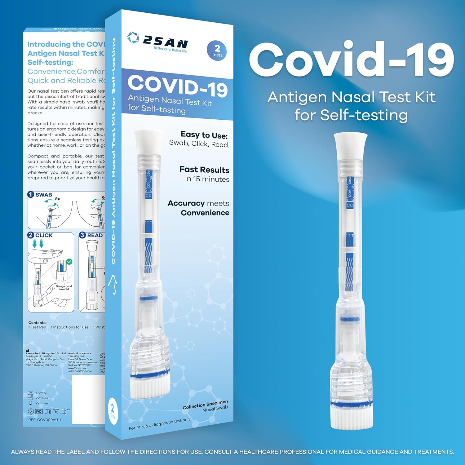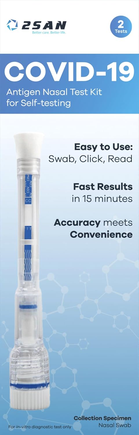 The 2San COVID-19 Pen Test offers a convenient solution for at-home testing. With results available in just 15 minutes, this rapid nasal swab test is designed for easy use. It is clinically accurate, ensuring reliable results to help you determine your COVID-19 status after potential exposure.