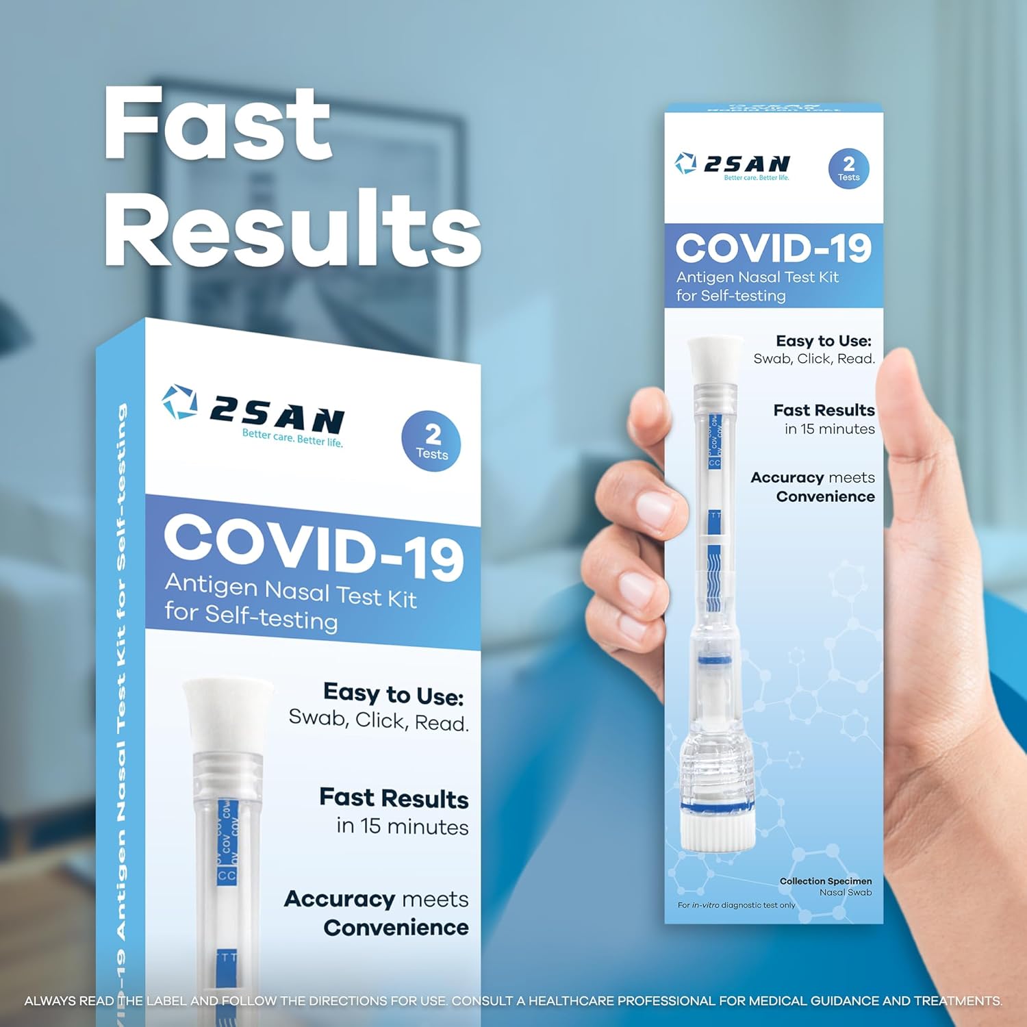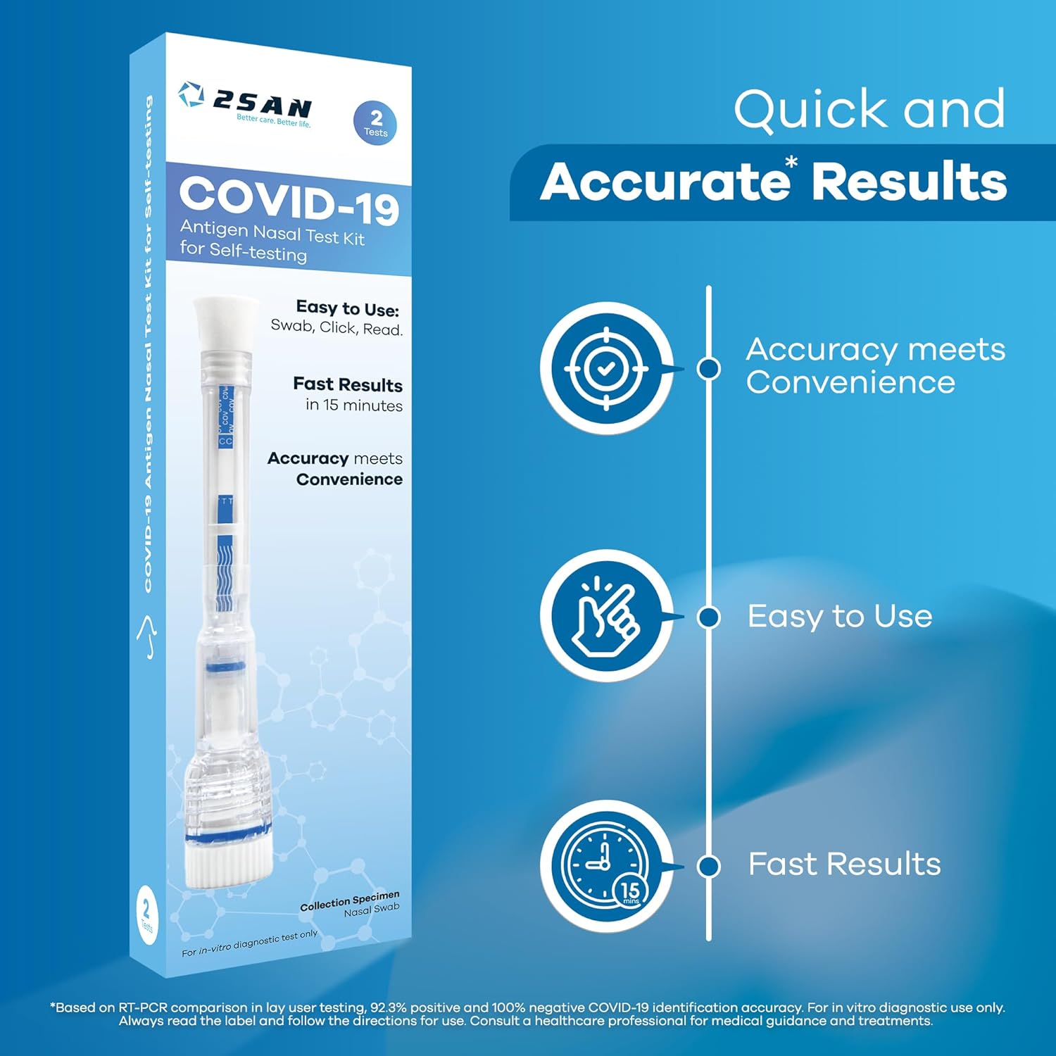 2San COVID-19 Pen Test, Results in 15 Mins, Rapid & Reliable Nasal Swab, Easy At-Home Testing, Clinically Accurate, Gentle, Stress-Free Use, 2-Pack (2 Tests)