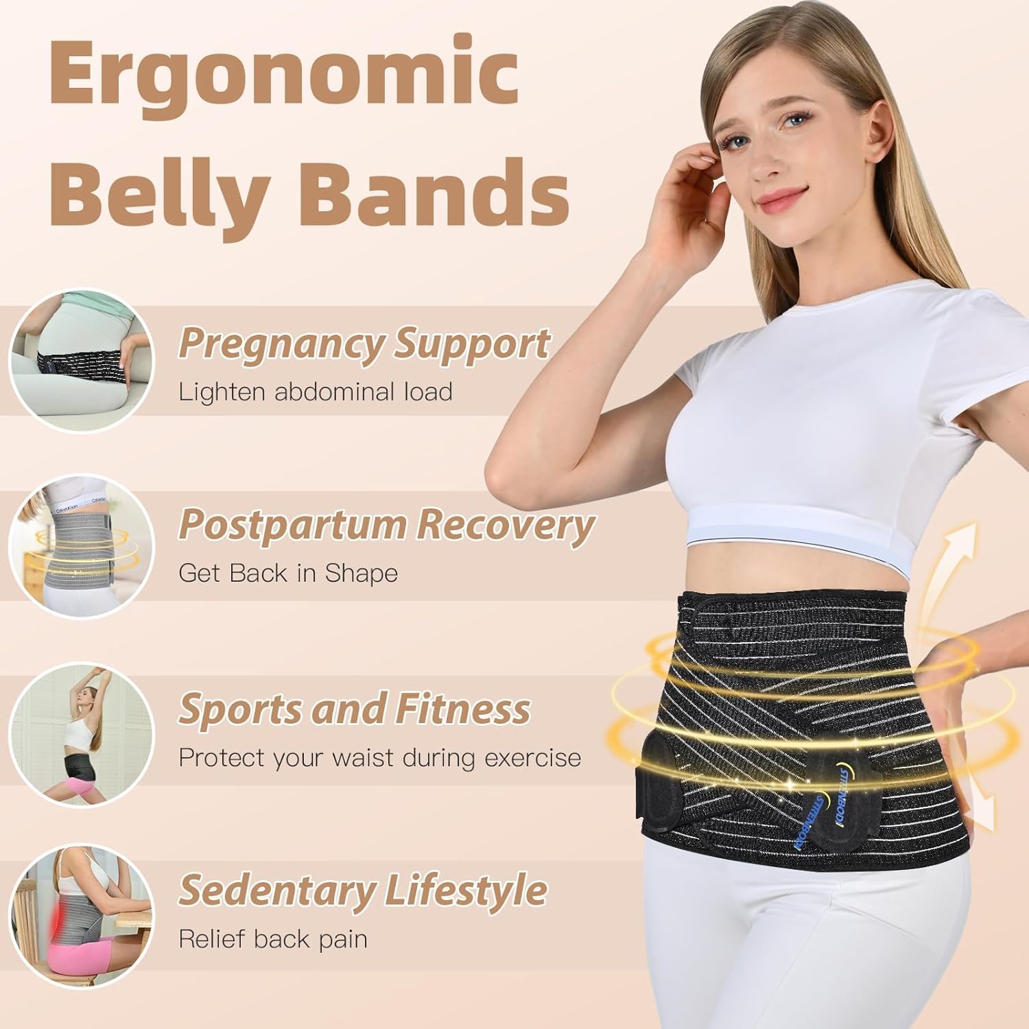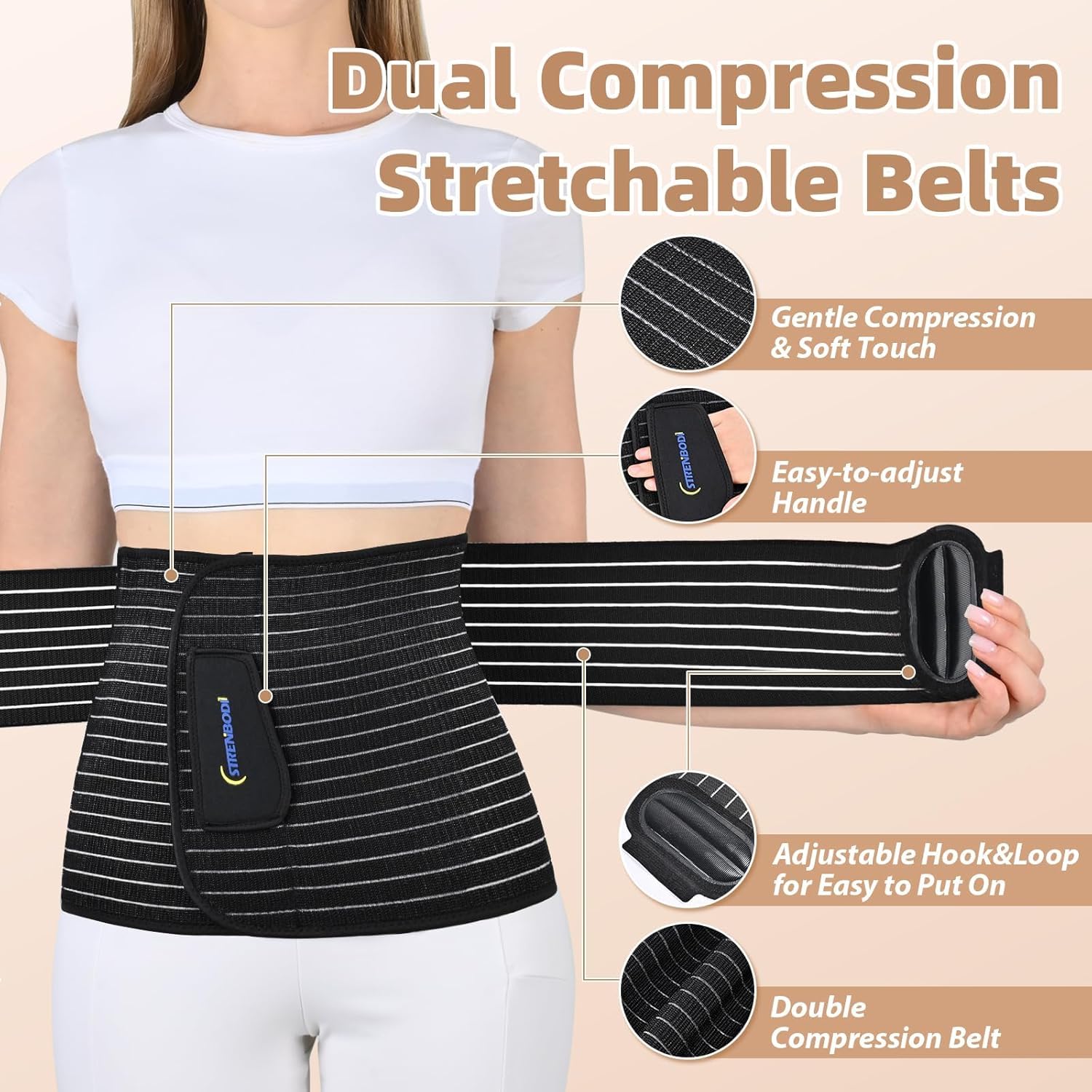 Abdominal Binder Post Surgery Postpartum Belly Band, C-section Belly Binder, Girdle for Postnatal, Adjustable Belly Wrap, Stomach Compression Hernia Belt For Men or Women After Pregnancy, Hysterectomy (Black XXL)