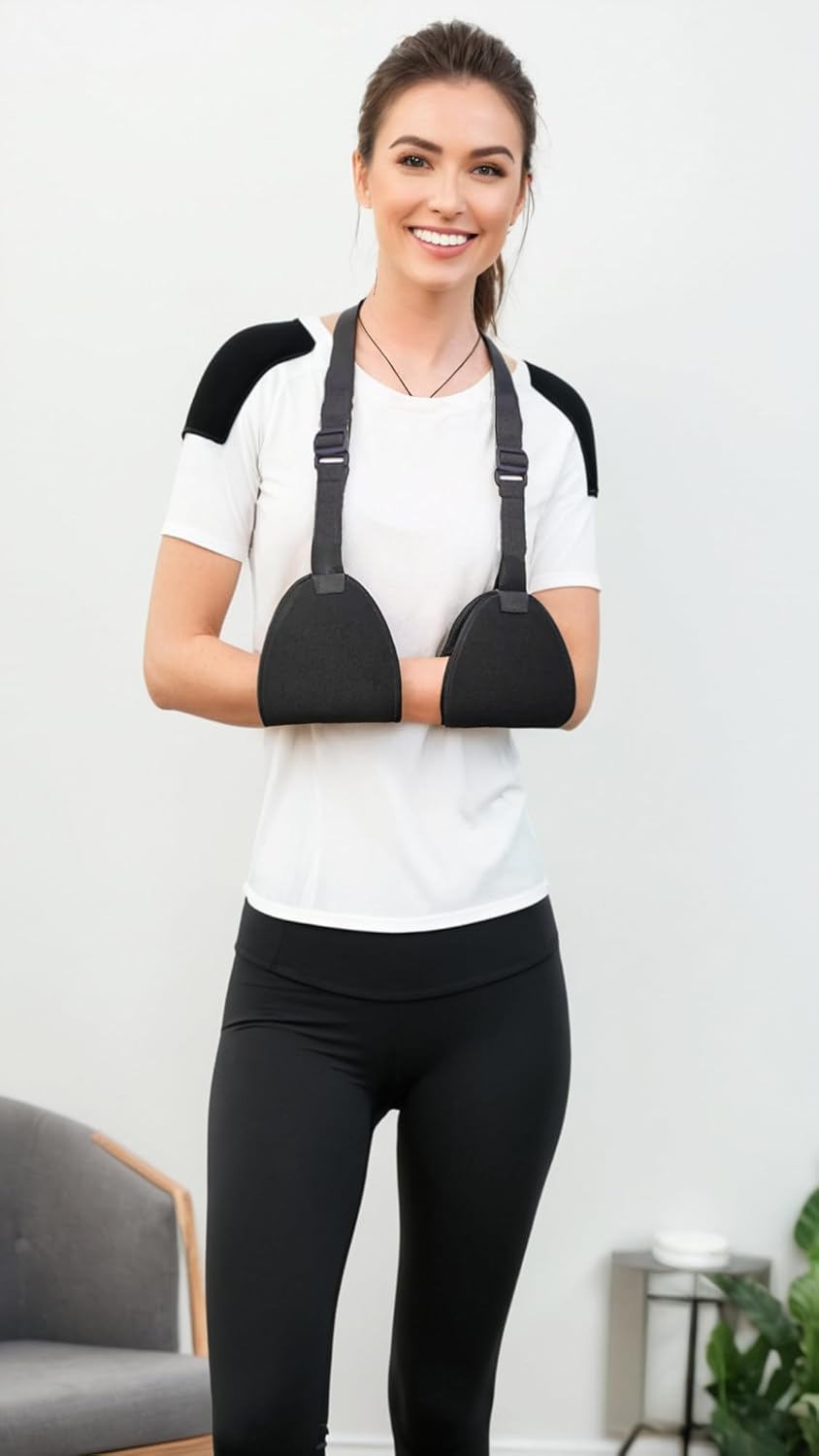 Adjustable Arm Support Sling for Rotator Cuff, Subluxation, & Post-Surgery Recovery – Comfortable & Durable Black Brace