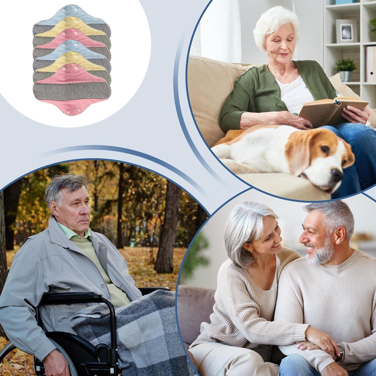 Adult Washable Pure Cotton Panty Liners,Reusable Sanitary Pads For Women,6 Pieces Leakproof Washable Breathable Napkins,for Elderly Urinary Postpartum Recovery Daily Home Indoor Outdoor Travel