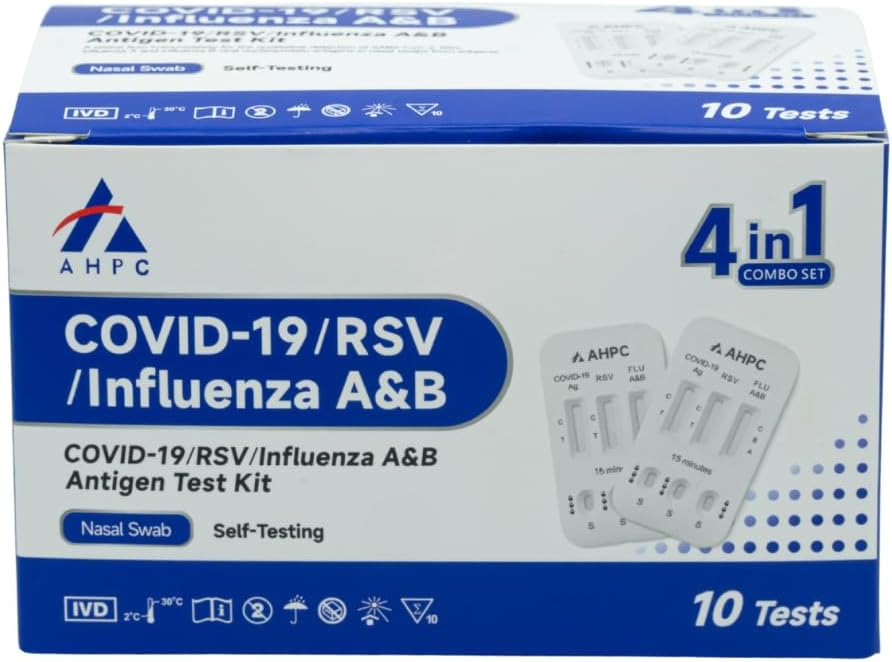 AHPC 4 in 1 COVID-19/RSV/Influenza A&B Antigen Test Kit – Rapid Antigen Test – COVID Flu RSV Kit with Nasal Swab – Convenient RAT Test – COVID Rapid Antigen for Home Use – Respiratory Testing – 1 Carton = 600 Tests (60 x 10 Pack)