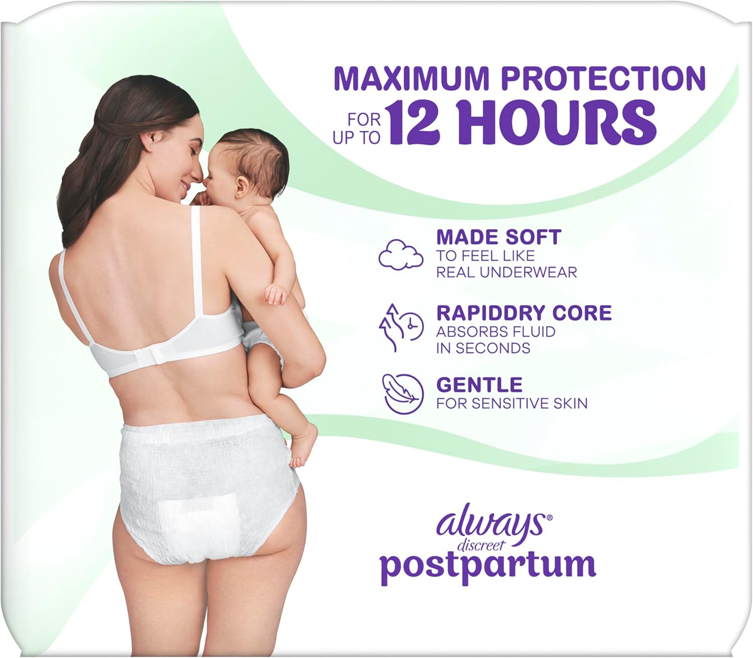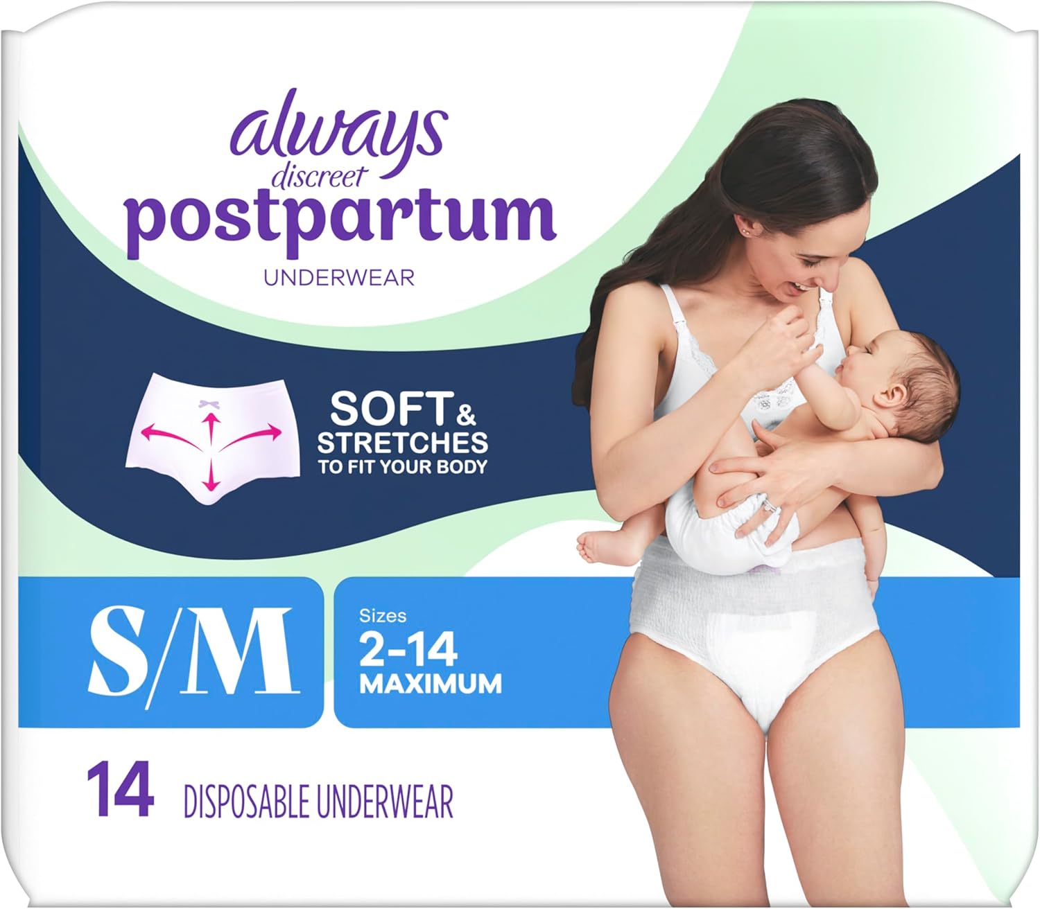 Always Discreet Postpartum and Adult Incontinence Underwear for Women, Size S/M, Maximum Protection, 16 CT