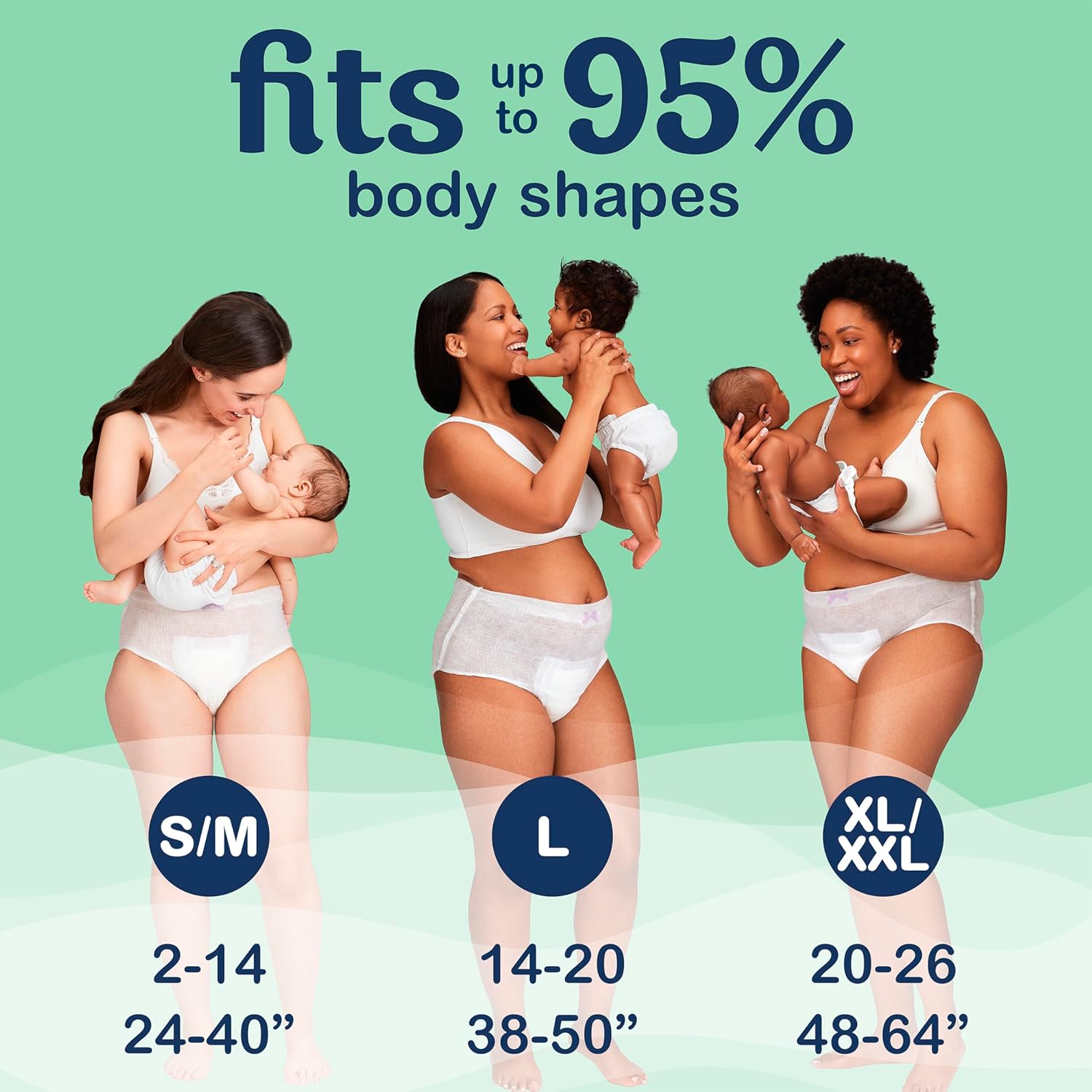 It is designed for postpartum protection against bleeding, discharge, lochia, and bladder protection.