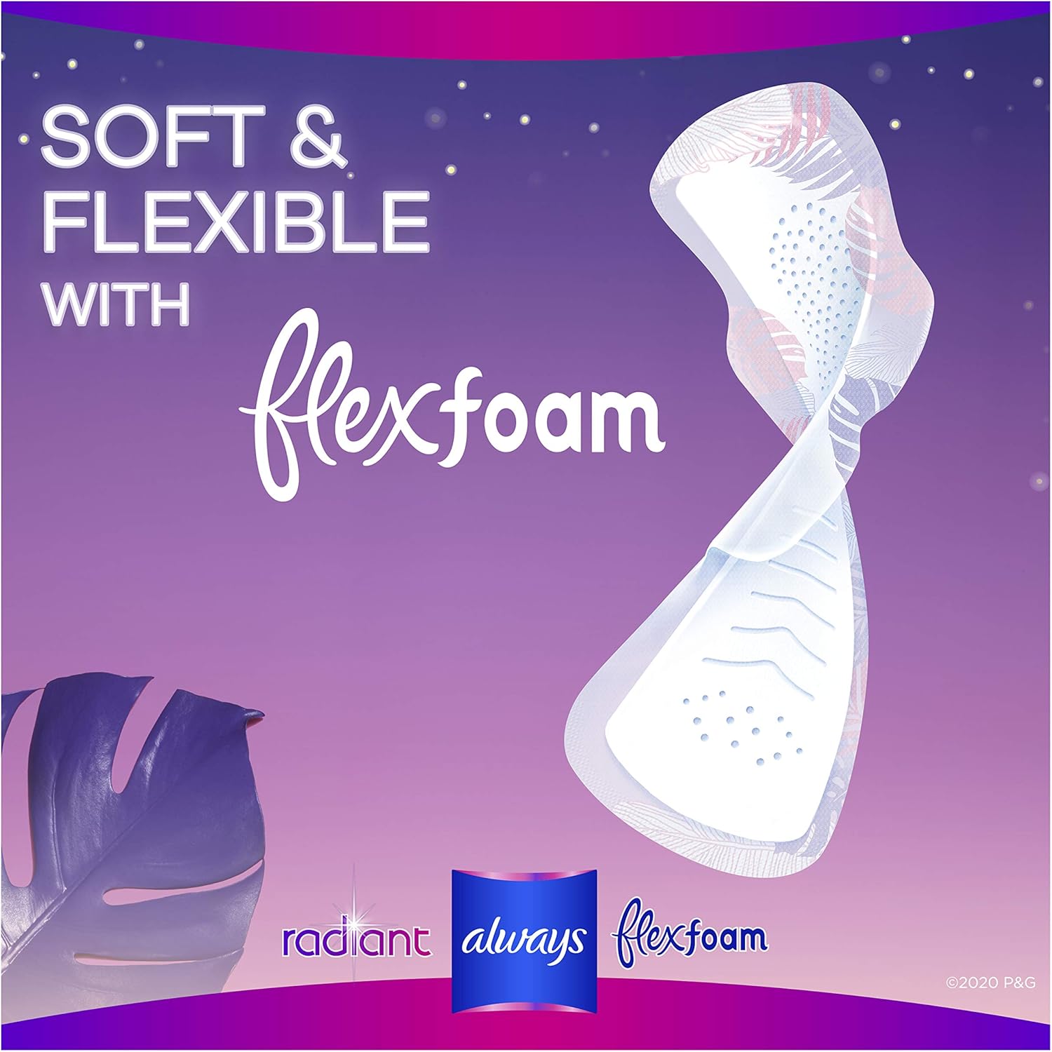 ALWAYS Radiant Size 4 Overnight Sanitary Pads with Wings are designed for maximum comfort and protection during the night. They feature a unique FlexFoam technology that ensures a zero-feel experience, allowing you to stay dry and comfortable throughout the night. The pads are equipped with powerful moisture-wicking capabilities that pull wetness away from your skin, keeping you feeling fresh. With a 50% larger back, these pads provide enhanced coverage where you need it most. They are lightly scented and come in colorful designs, making them a discreet and pleasant option for overnight use.