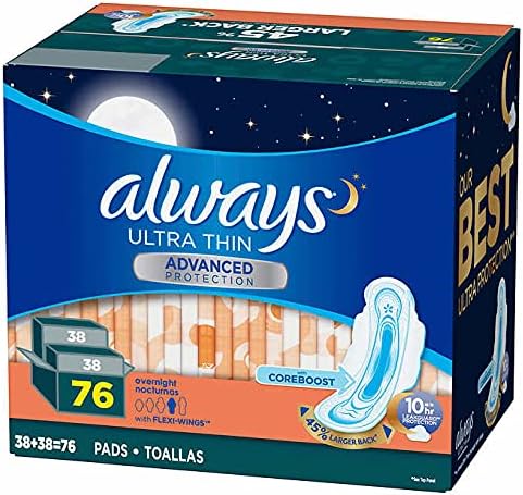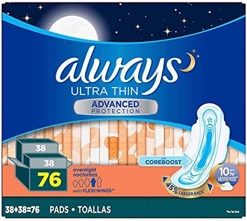 Always Ultra Panty Liners Thin Advanced with Flexi Wings with Coreboost 10 Hours Leak Protection Larger Back 76 Count