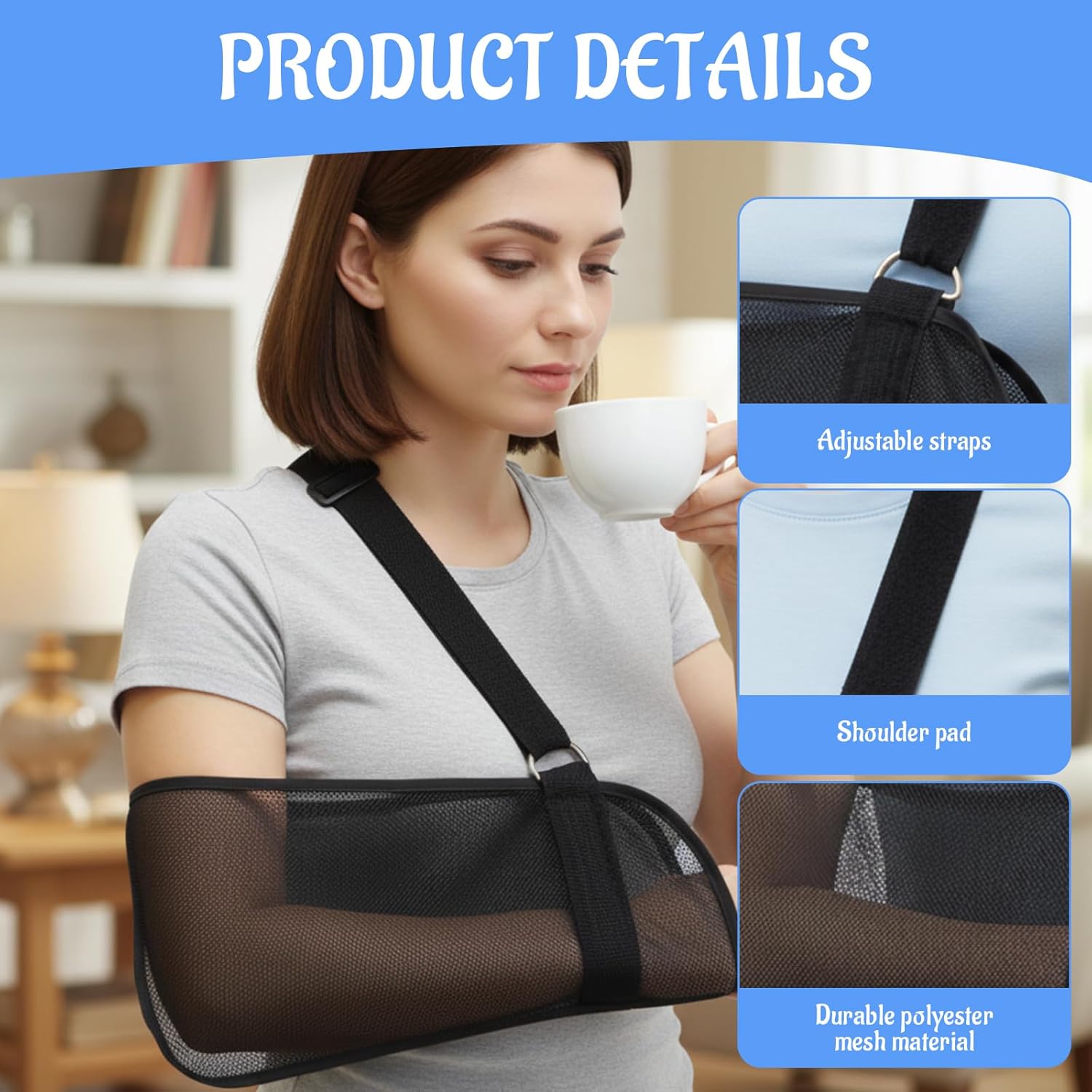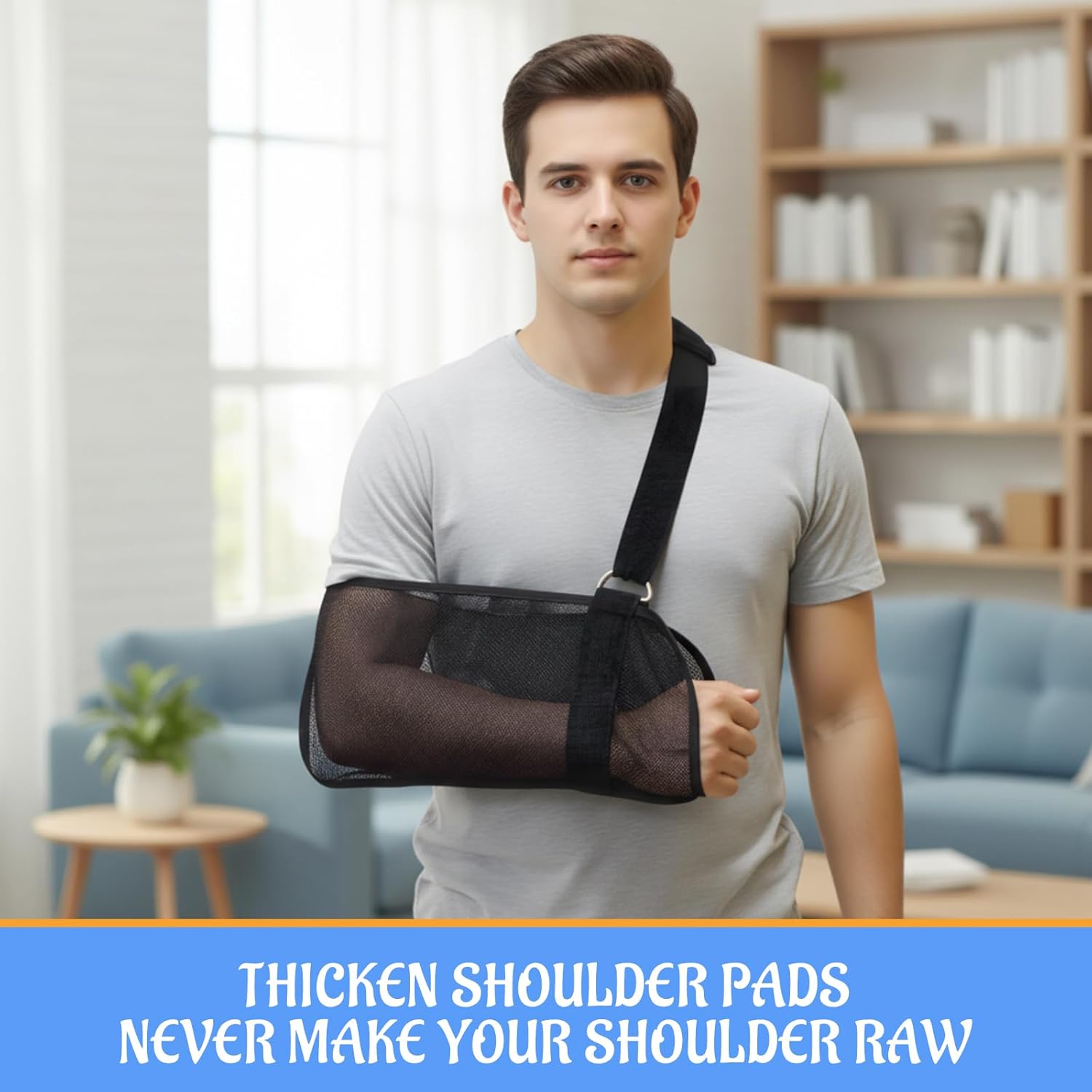 Arm Sling, Shoulder Support Brace for Injured Arm, Adjustable Black Arm Sling for Post-Surgery Recovery, Daily Activities