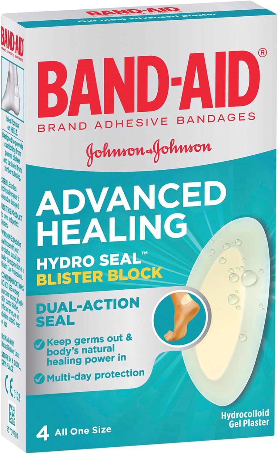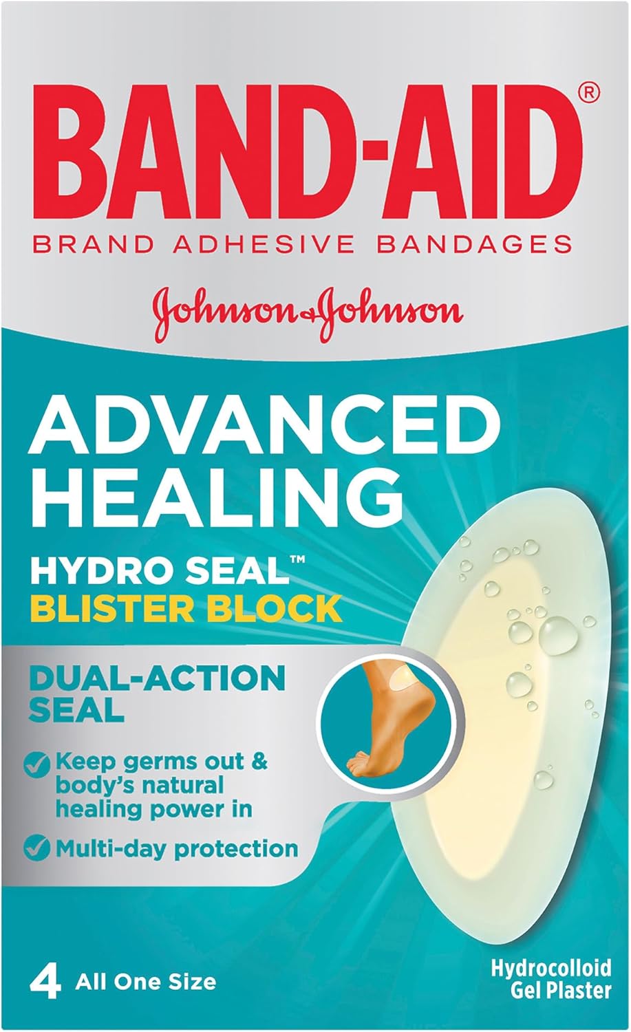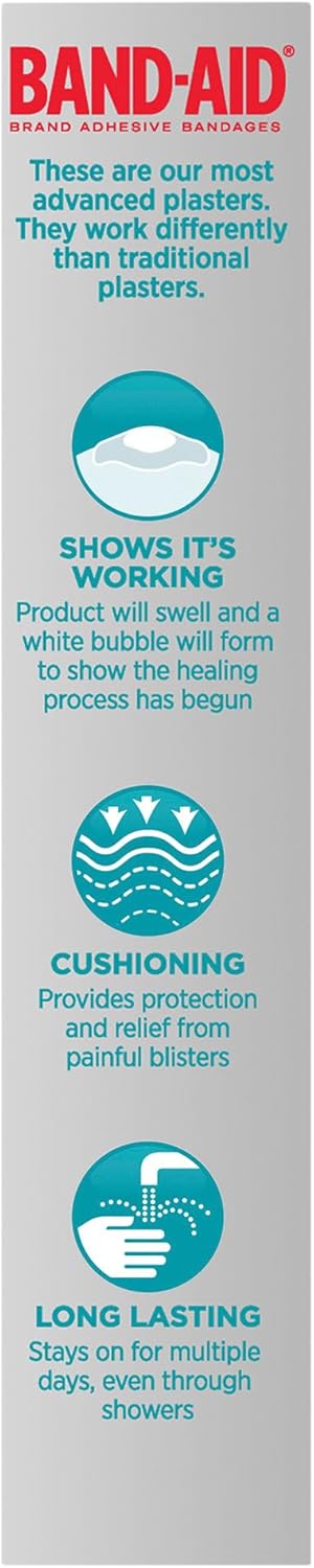 The Band-Aid Advanced Healing Hydro Seal Blister Block is designed to provide effective relief from blister pain. Utilizing hydrocolloid technology, it acts like a second skin, helping to maintain moisture balance for faster healing. This bandage is particularly ideal for use on heels, offering cushioning against painful blisters while protecting the area from further irritation.
