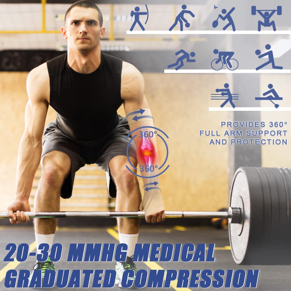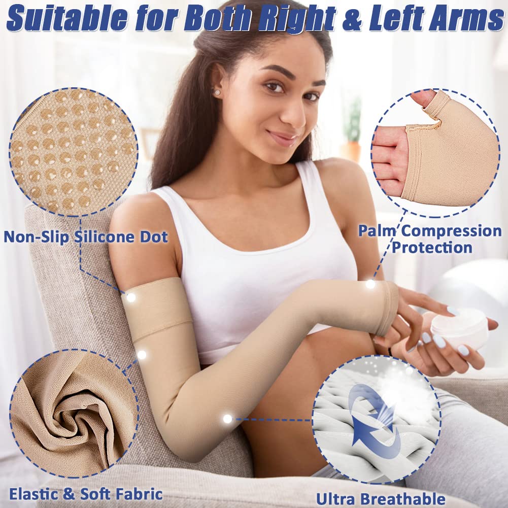 beister Lymphedema Medical Compression Arm Sleeve with Gauntlet for Men & Women (Single), 20-30 mmHg Full Arm Support