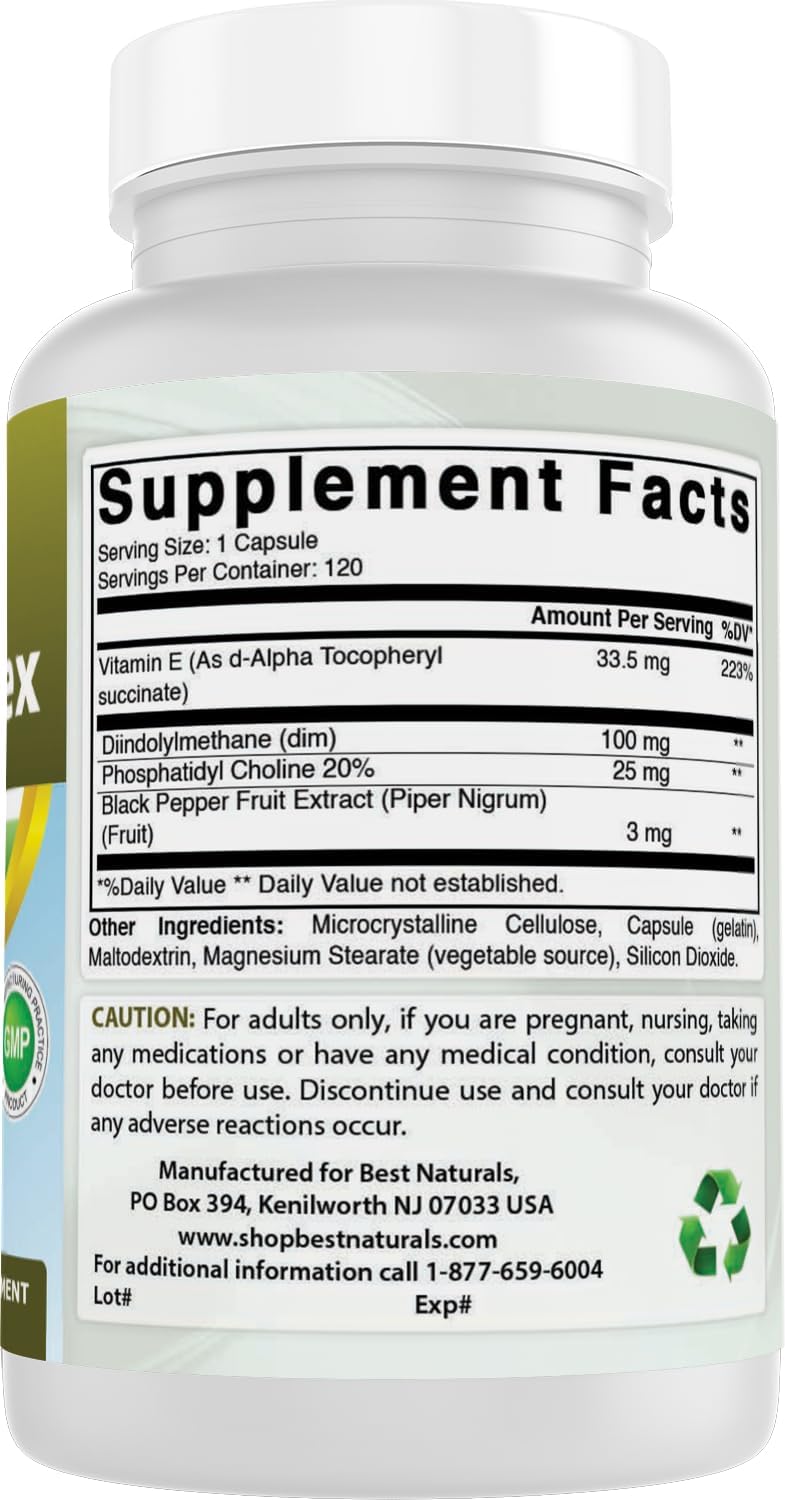 Best Naturals DIM Supplement 100 mg 120 Capsules, DIM for Estrogen Metabolism & Balance, For Menopause, Body Building, PCOS & Hormonal Acne