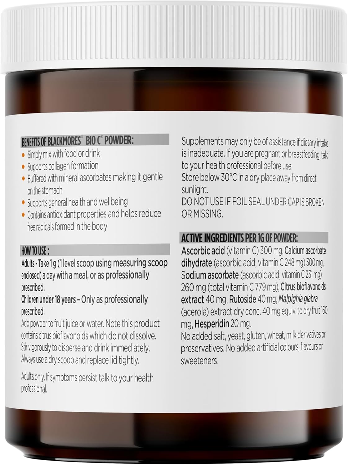 Blackmores Bio C Powder | Reduces Severity & Duration of Common Cold Symptoms | 125 Grams Powder