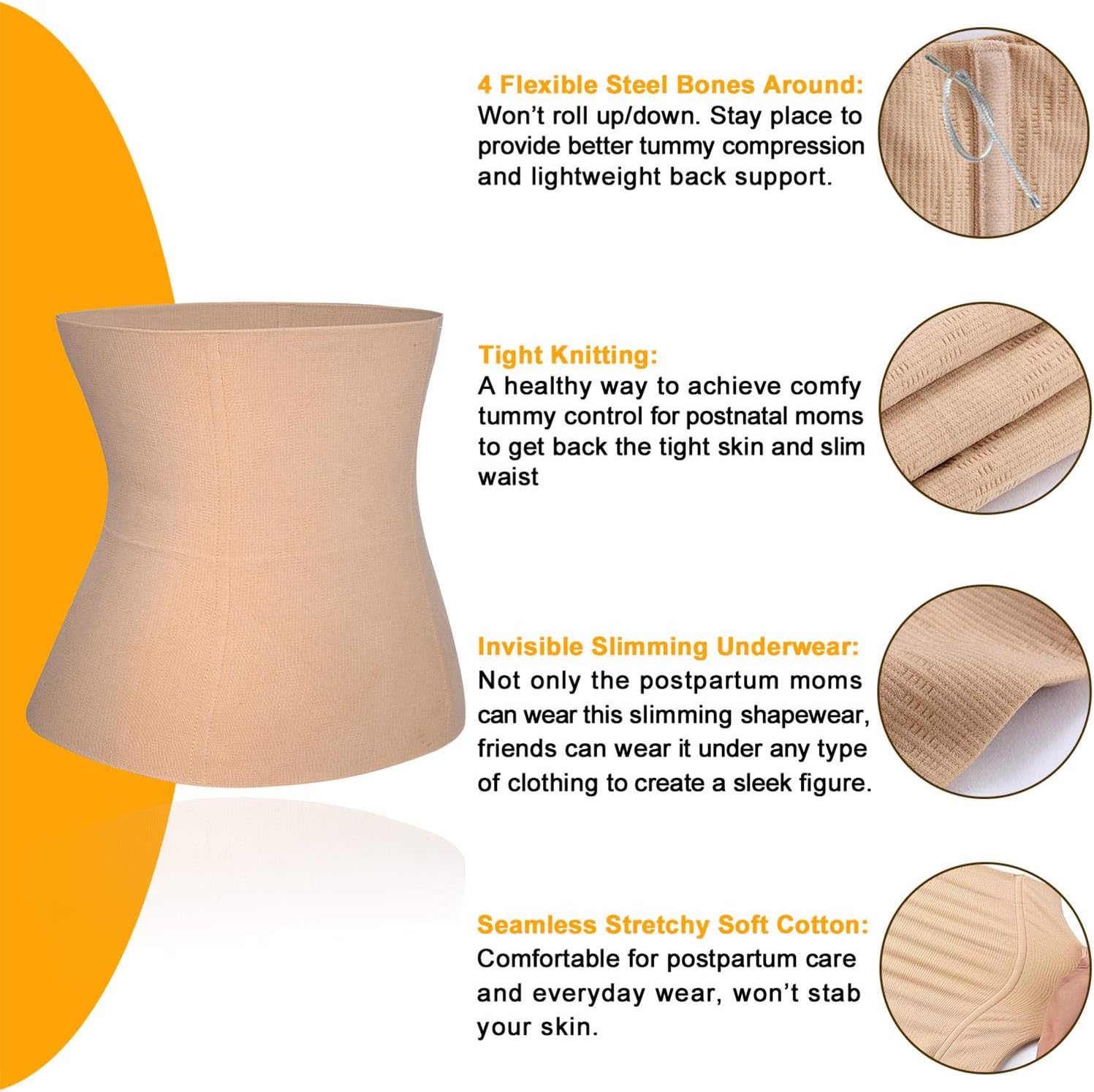 BRABIC Seamless Postpartum Belly Band Wrap Underwear, C-Section Recovery Belt Binder Slimming Shapewear for Women, Beige, Medium