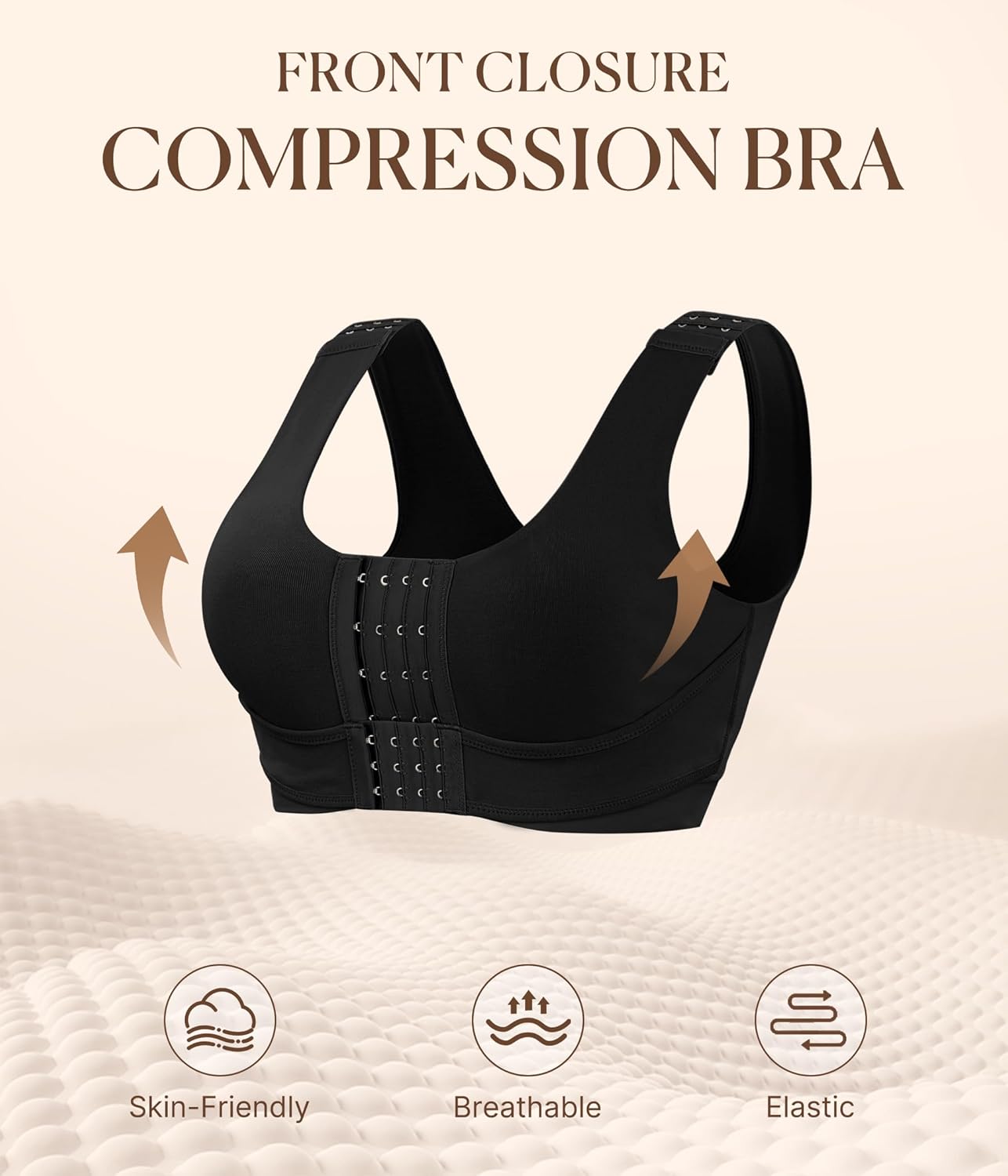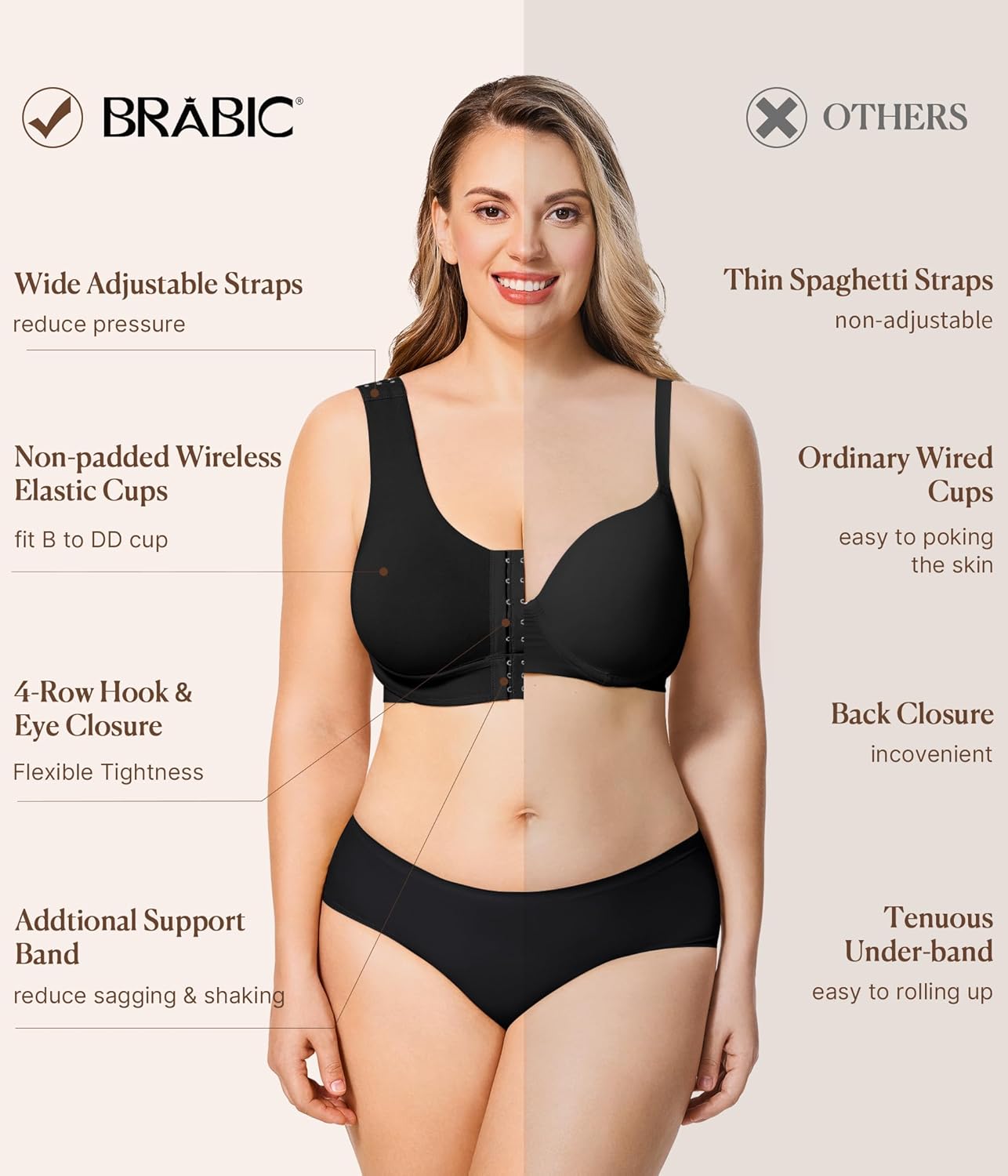 BRABIC Womens Wireless Front Closure Bra Post Surgery Compression Mastectomy Surgical Support Full Coverage Bralette
