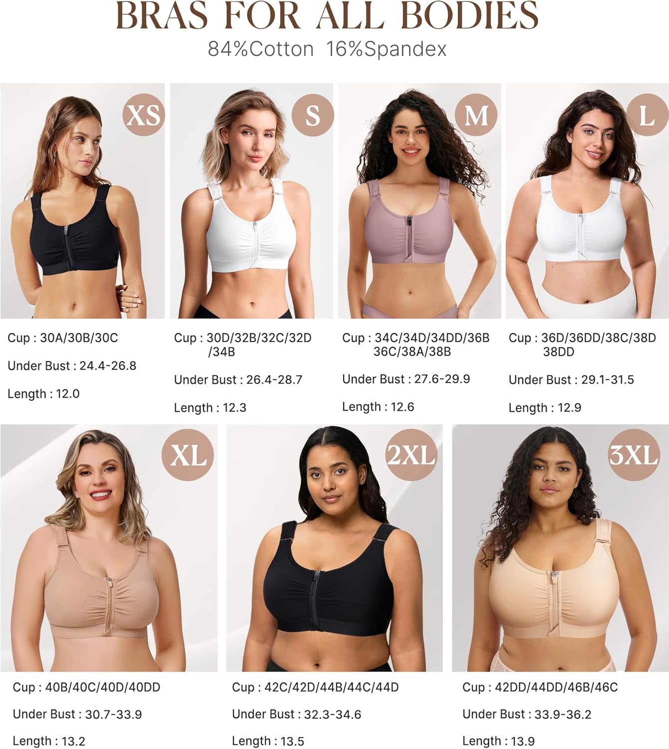 BRABIC Zip Front Closure Everyday Bra for Women Post Surgery Compression Support with Adjustable Straps Wirefree