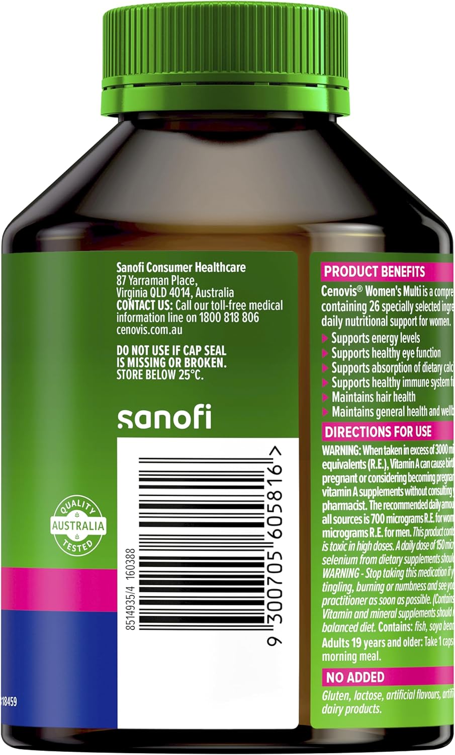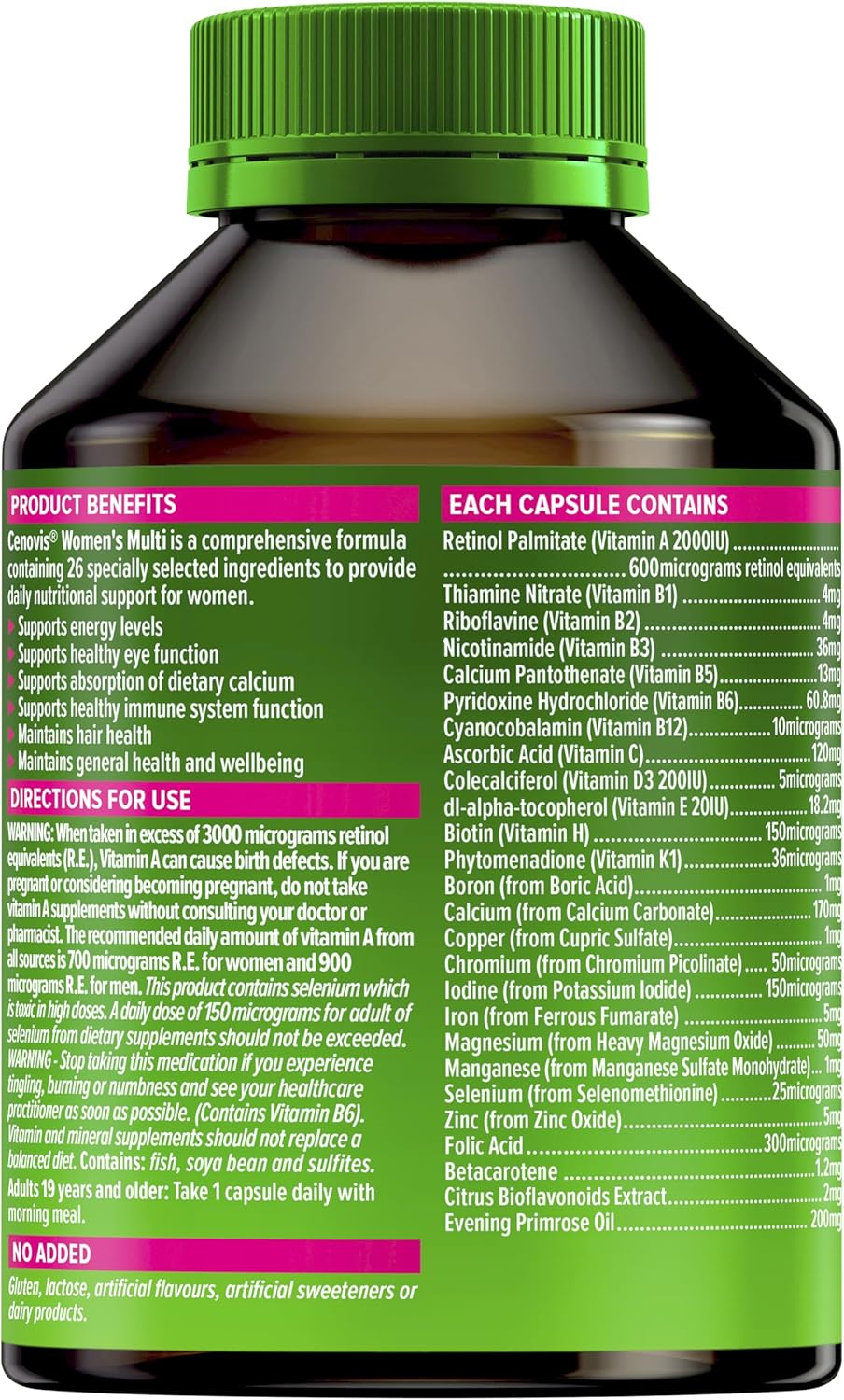 Cenovis Women's Multi Capsules are designed to support energy levels, immune system function, healthy eye function, and hair health.