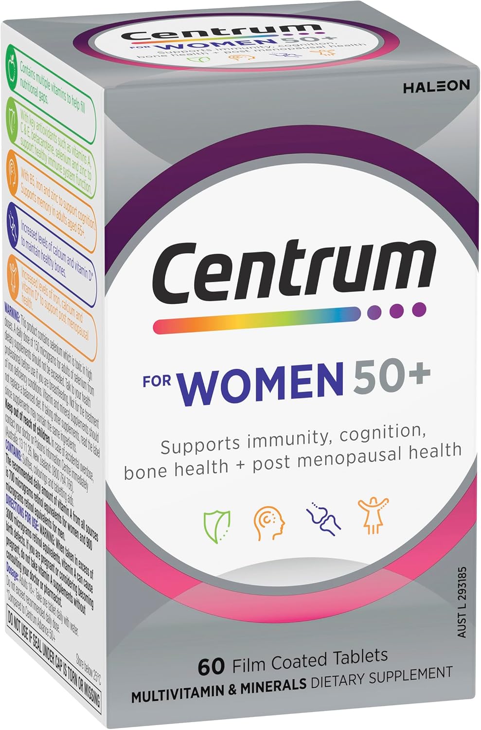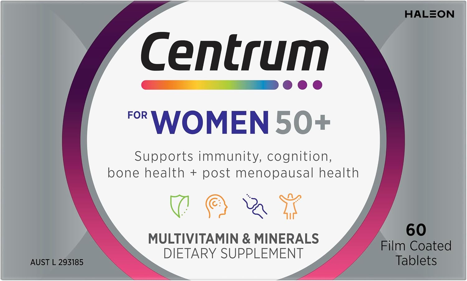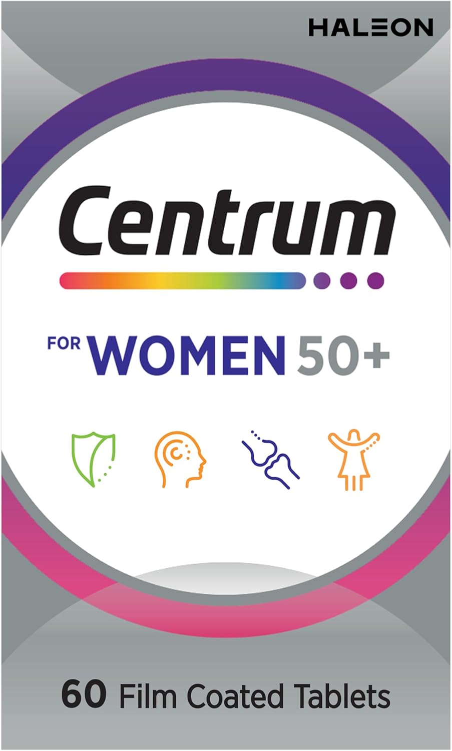 Centrum Women 50+, Multi Vitamin & Minerals Supplement, 60 Tablets | Supports Immunity, Cognition, Bone Health + Post Menopausal Health