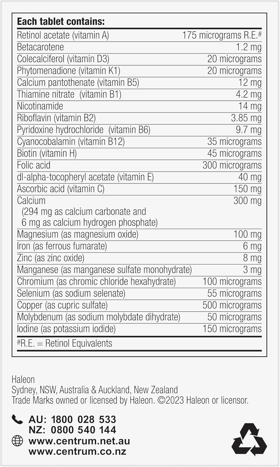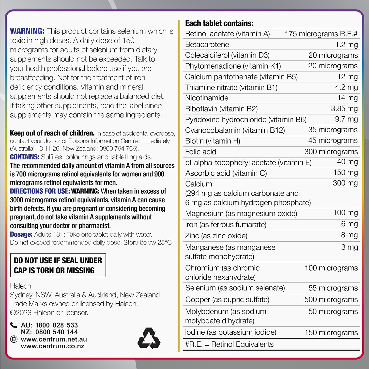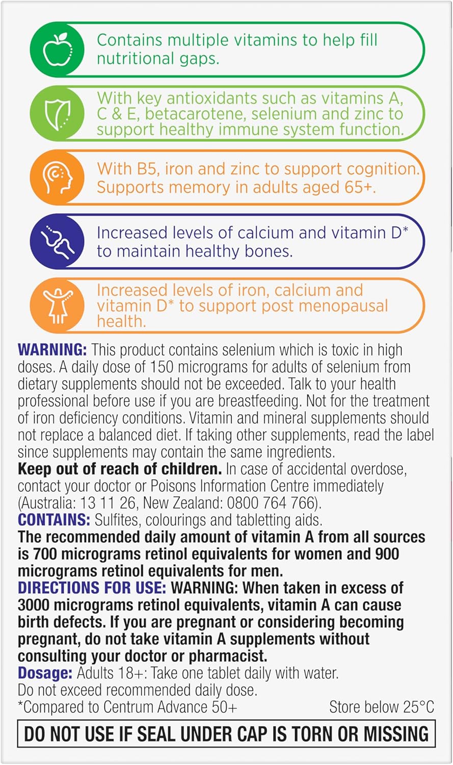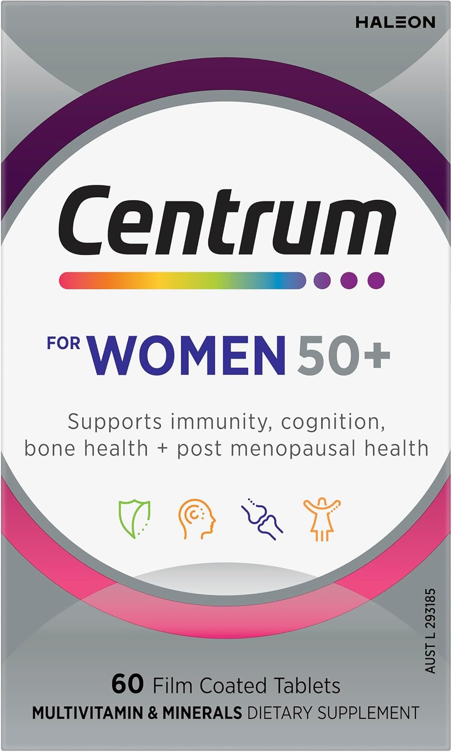Centrum Women 50+, Multi Vitamin & Minerals Supplement, 60 Tablets | Supports Immunity, Cognition, Bone Health + Post Menopausal Health