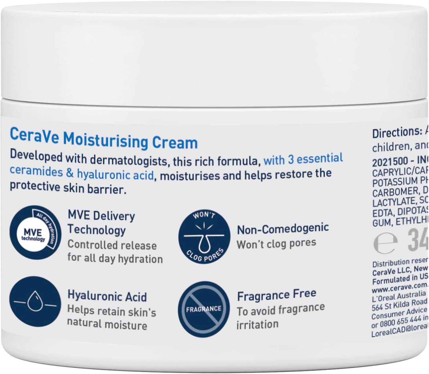 CeraVe Moisturising Cream 340g, Dry to Very Dry Skin Face & Body Moisturiser to Help Restore the Protective Skin Barrier, Hyaluronic Acid + 3 Essential Ceramides, Fragrance Free