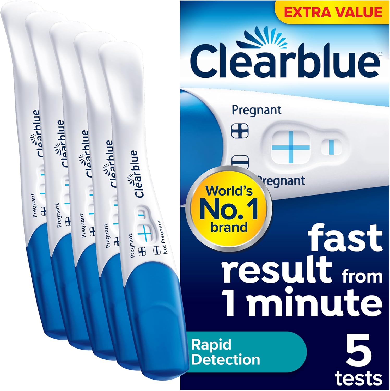 Clearblue Pregnancy Test, Rapid Detection Value Pack, Result As Fast As 1 Minute, 5 Tests