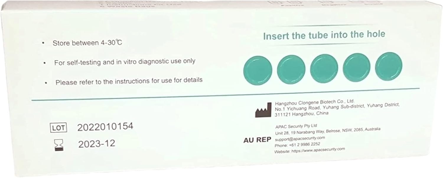 Clungene Nasal Swab Rapid Antigen Test (RAT) COVID-19 5 pack ARTG ID:333341