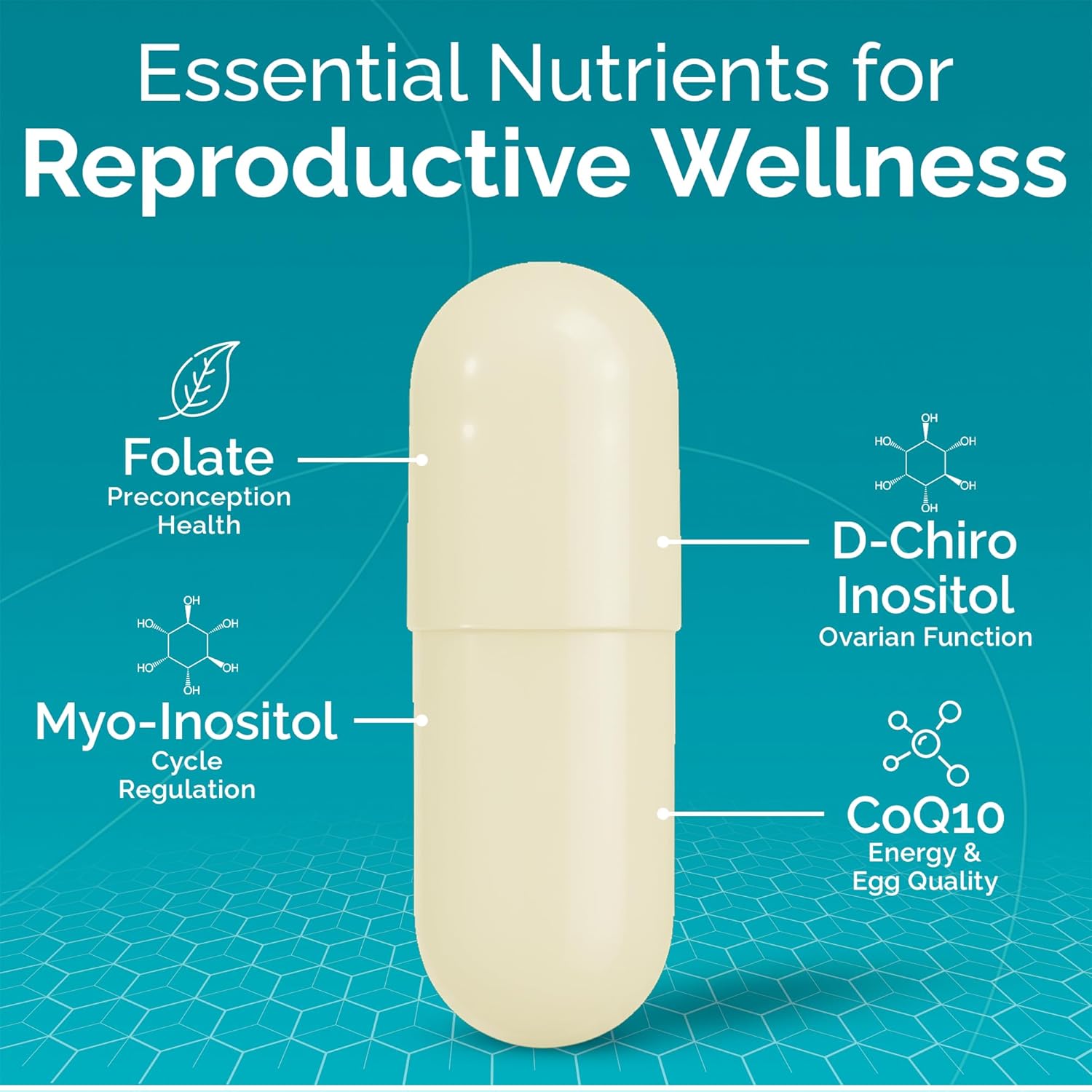 - Contains Myo-Inositol and D-Chiro Inositol for hormonal balance