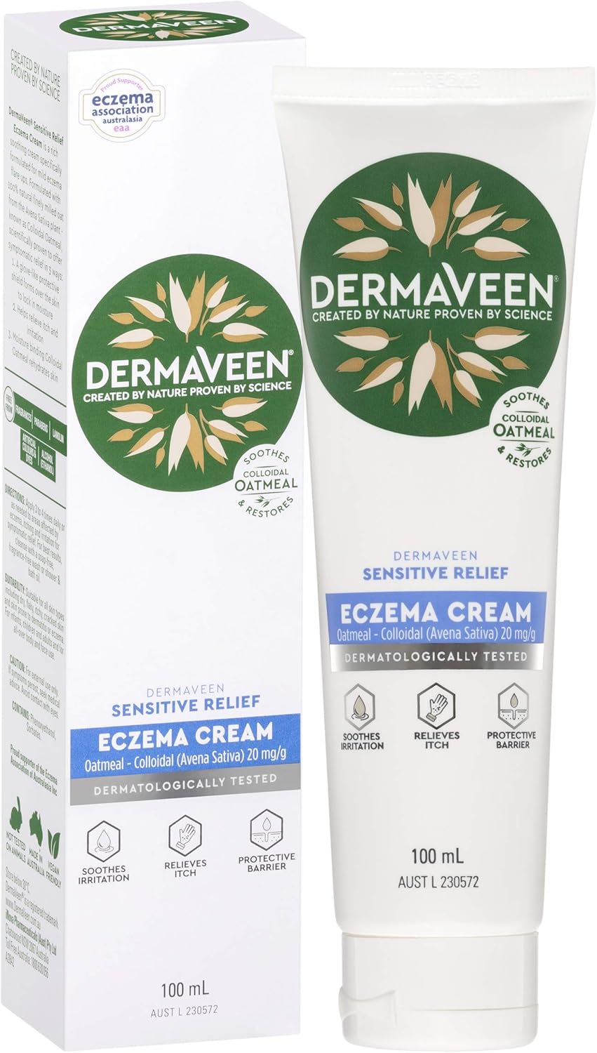 DermaVeen Sensitive Relief Eczema Cream is available in a 100 mL tube.