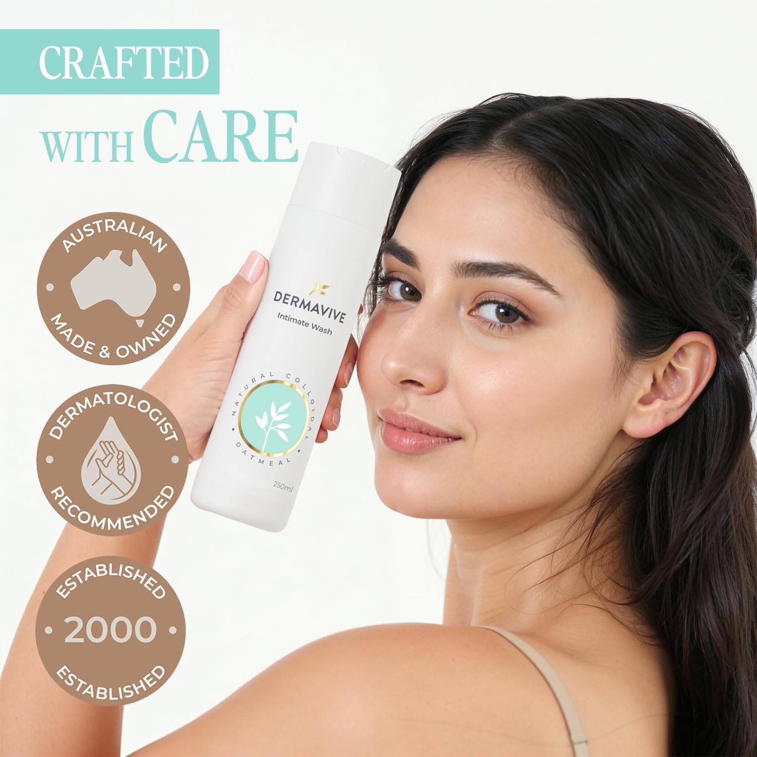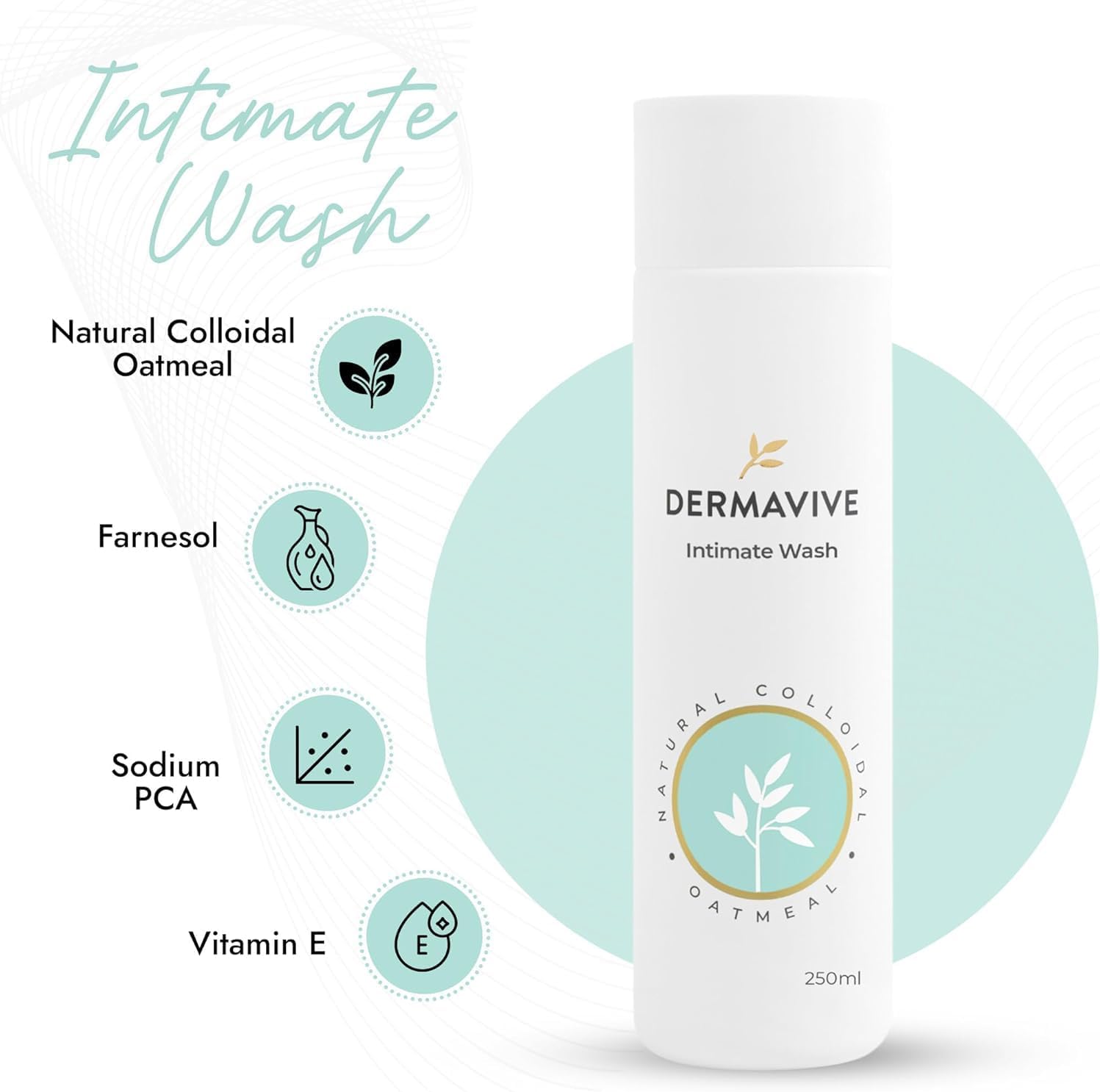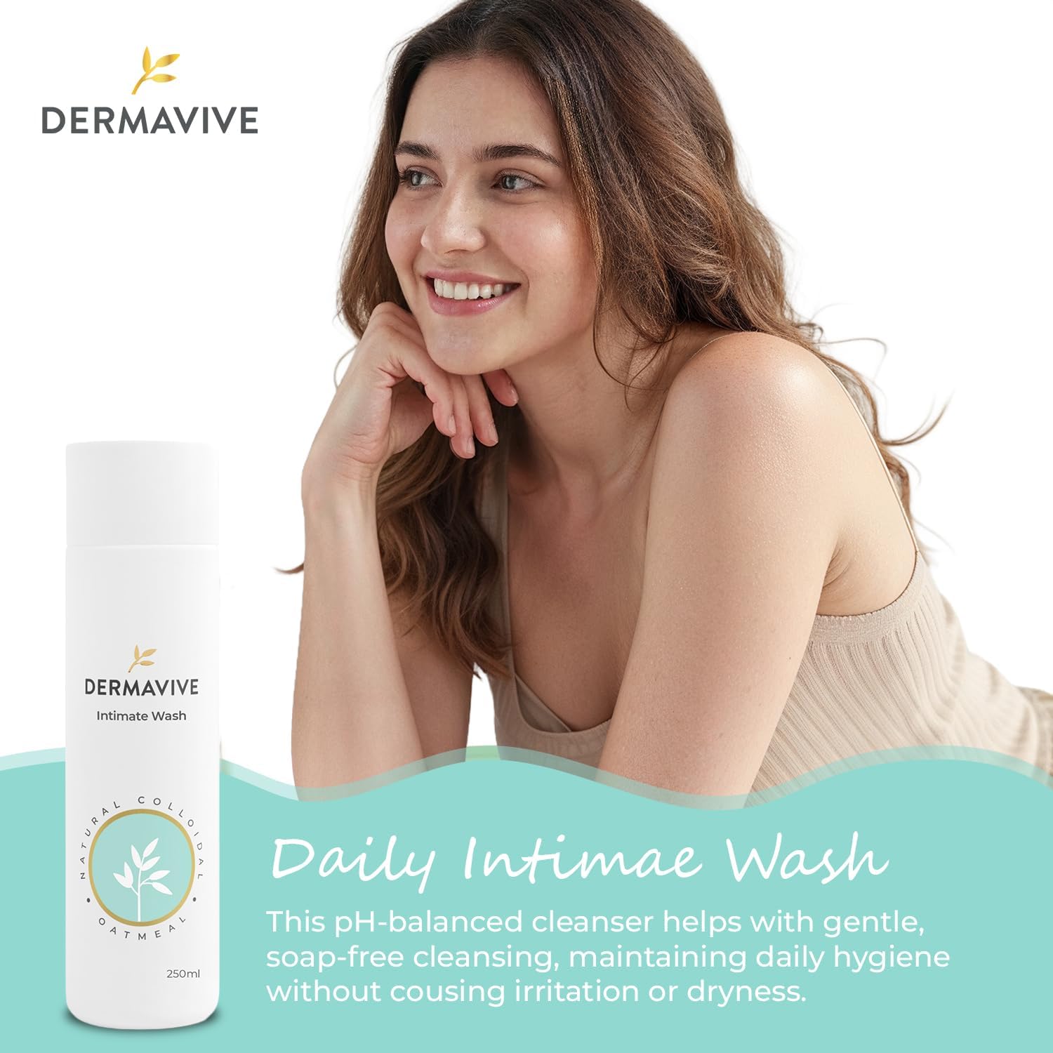 Dermavive Intimate Wash, Gentle Feminine Cleanser for Women, Soap-Free pH-Balanced Hygiene Wash, Dermatologist Tested, Odor Control, Daily Use, 250ml (8.45 fl oz)