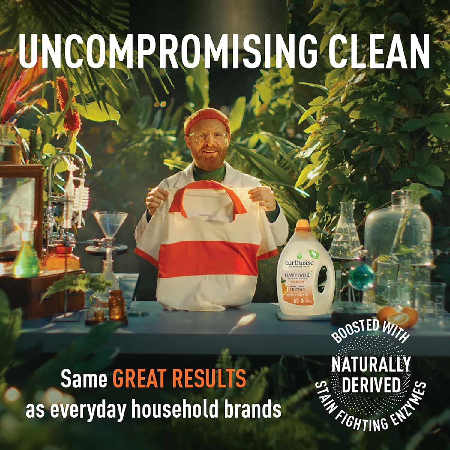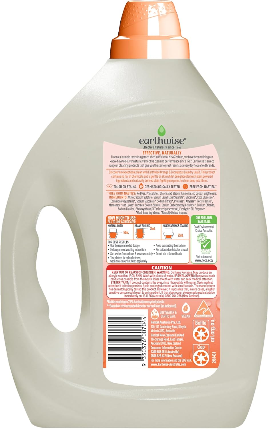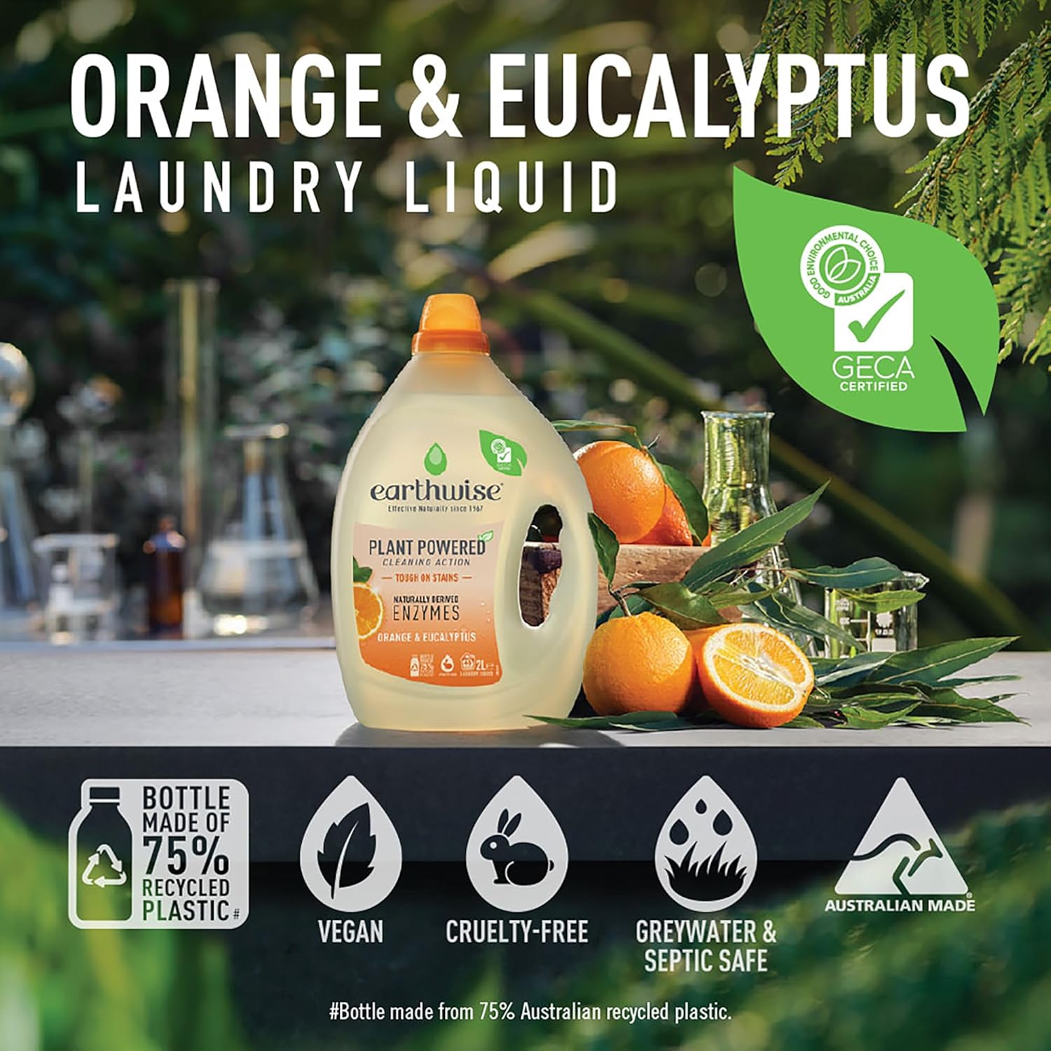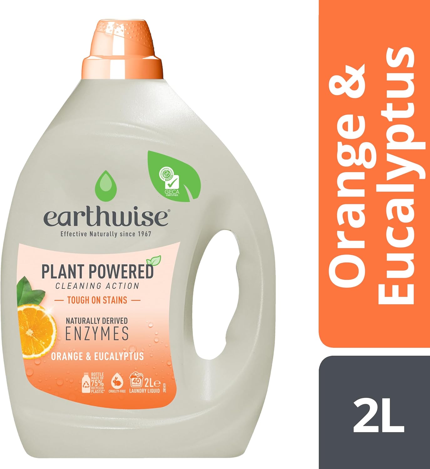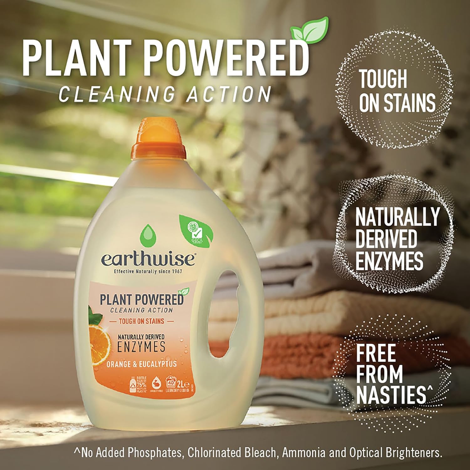Earthwise Orange & Eucalyptus Laundry Washing Detergent Liquid 2L, 40 Washloads, Suitable for Front & Top Loader, Tough on Stains, Plant Powered Cleaning Action with Naturally Derived Enzymes