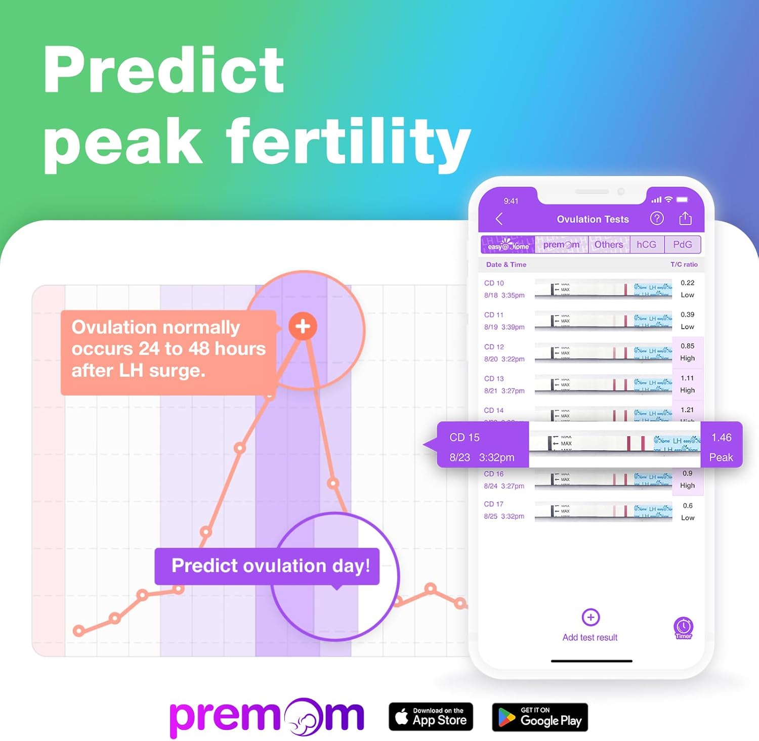 Easy@Home 100 Ovulation Test and 20 Pregnancy Test Strips, FSA Eligible Ovulation Test Kit Powered by Premom Ovulation Predictor Free iOS&Android APP,100LH +20HCG