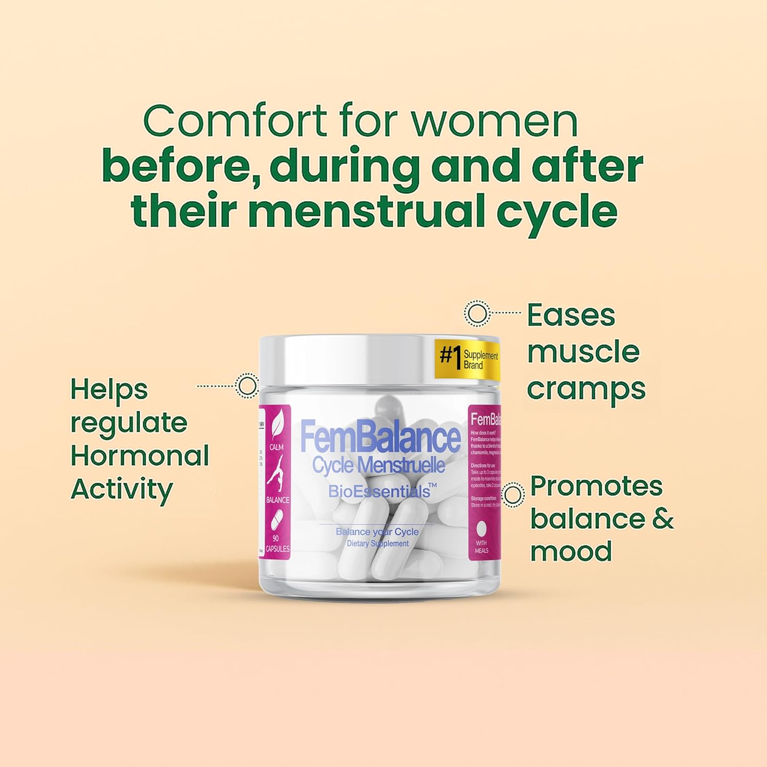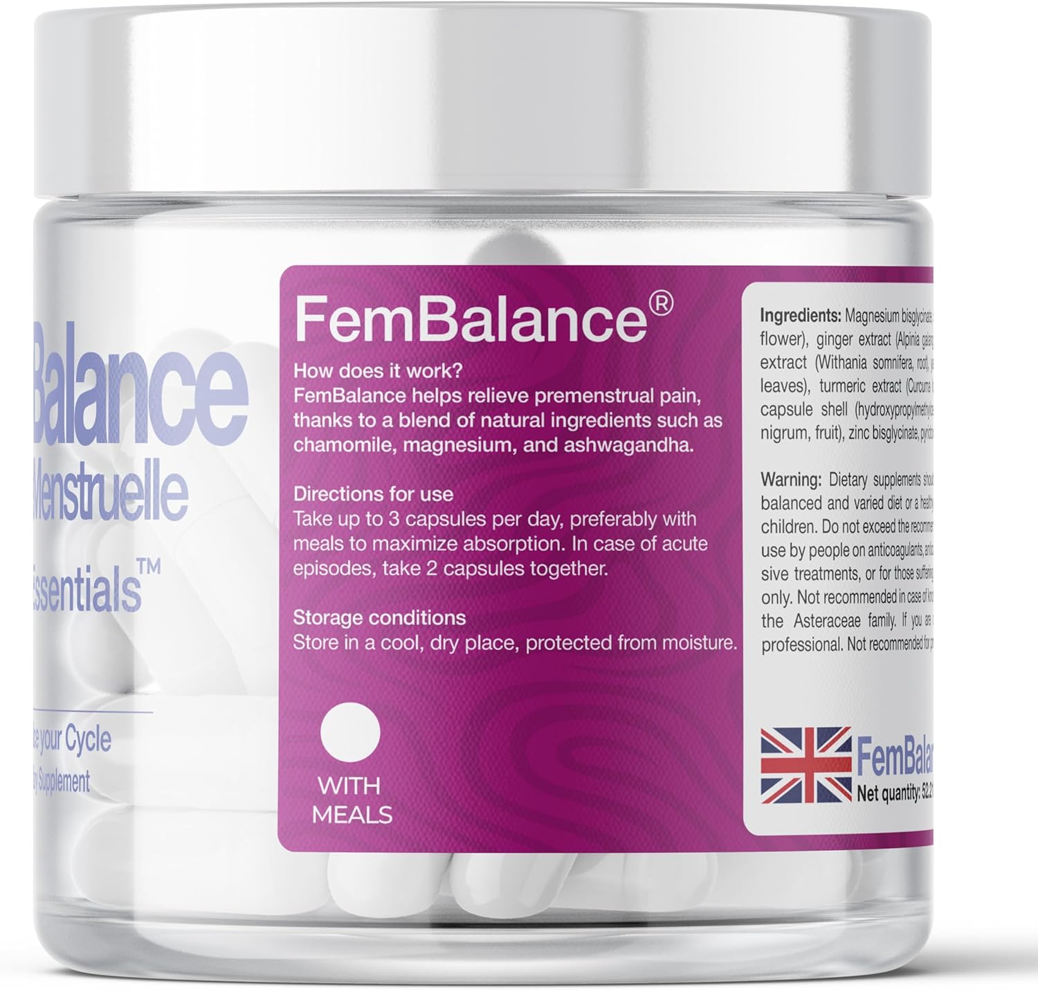 FemBalance — Women’s Hormone Balance Supplement — Ashwagandha, Magnesium & Chamomile for PMS Relief, Mood & Energy — Hormonal Balance for Women — 90 Vegan Capsules