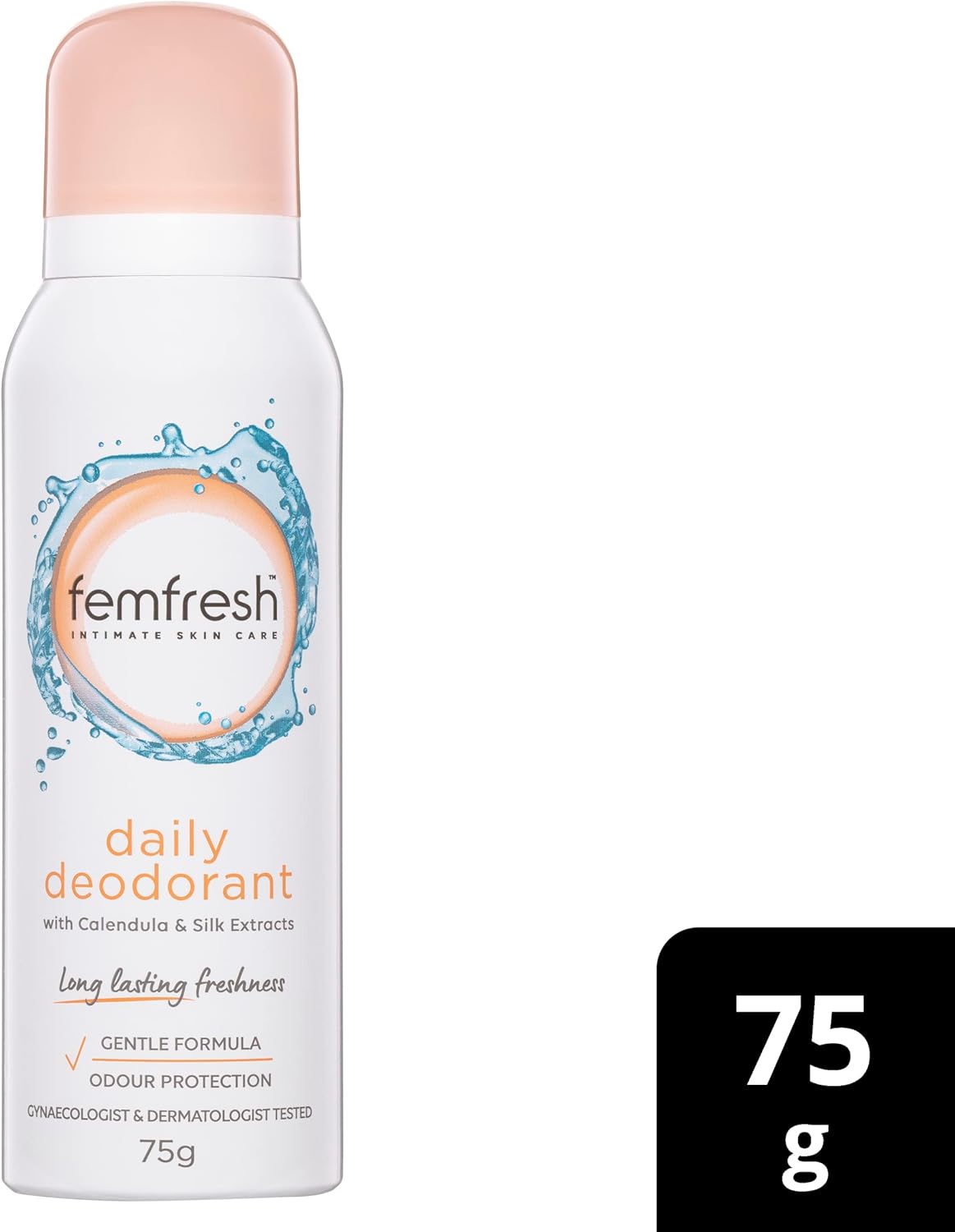 Femfresh Daily Deodorant 75g, Long-Lasting Freshness and Comfort for Intimate Skin, With Calendula & Silk Extracts, Odour Protection, Dermatologically & Gynaecologically Tested