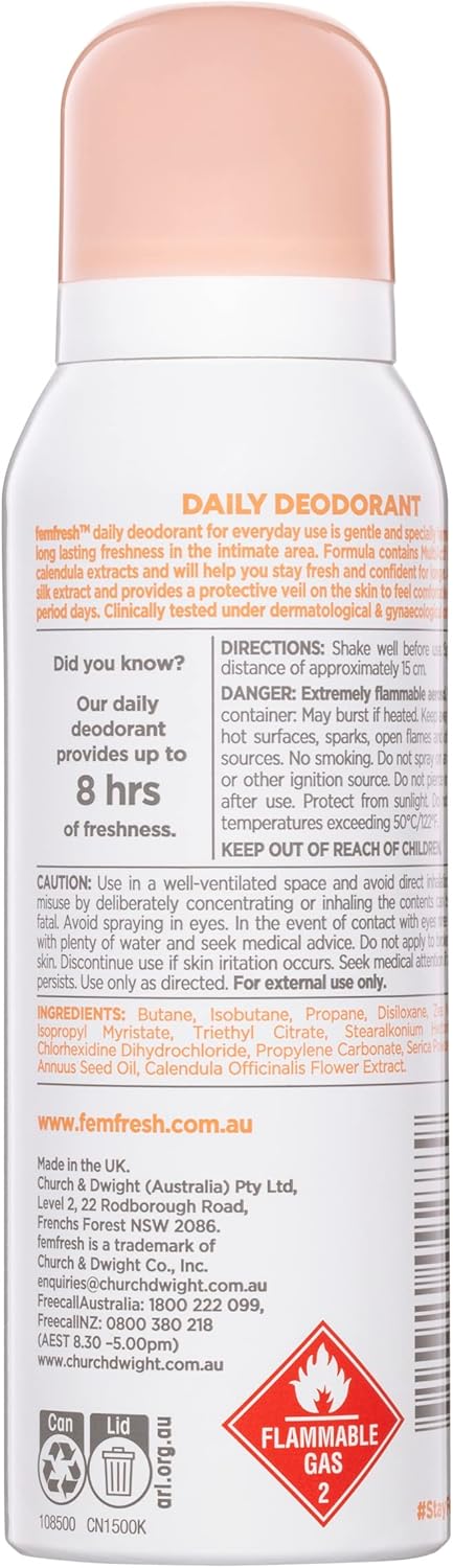 Femfresh Daily Deodorant is designed to keep you feeling confident and comfortable, even during your time of the month. It also provides a protective layer against discomfort, making it ideal for those experiencing incontinence.
