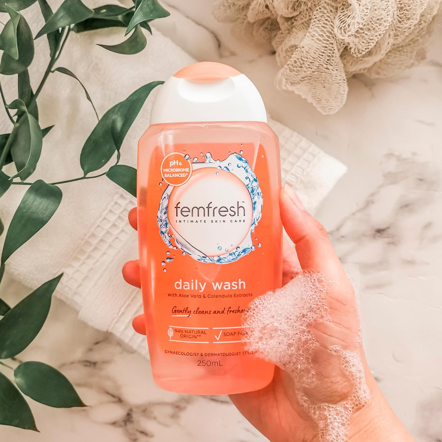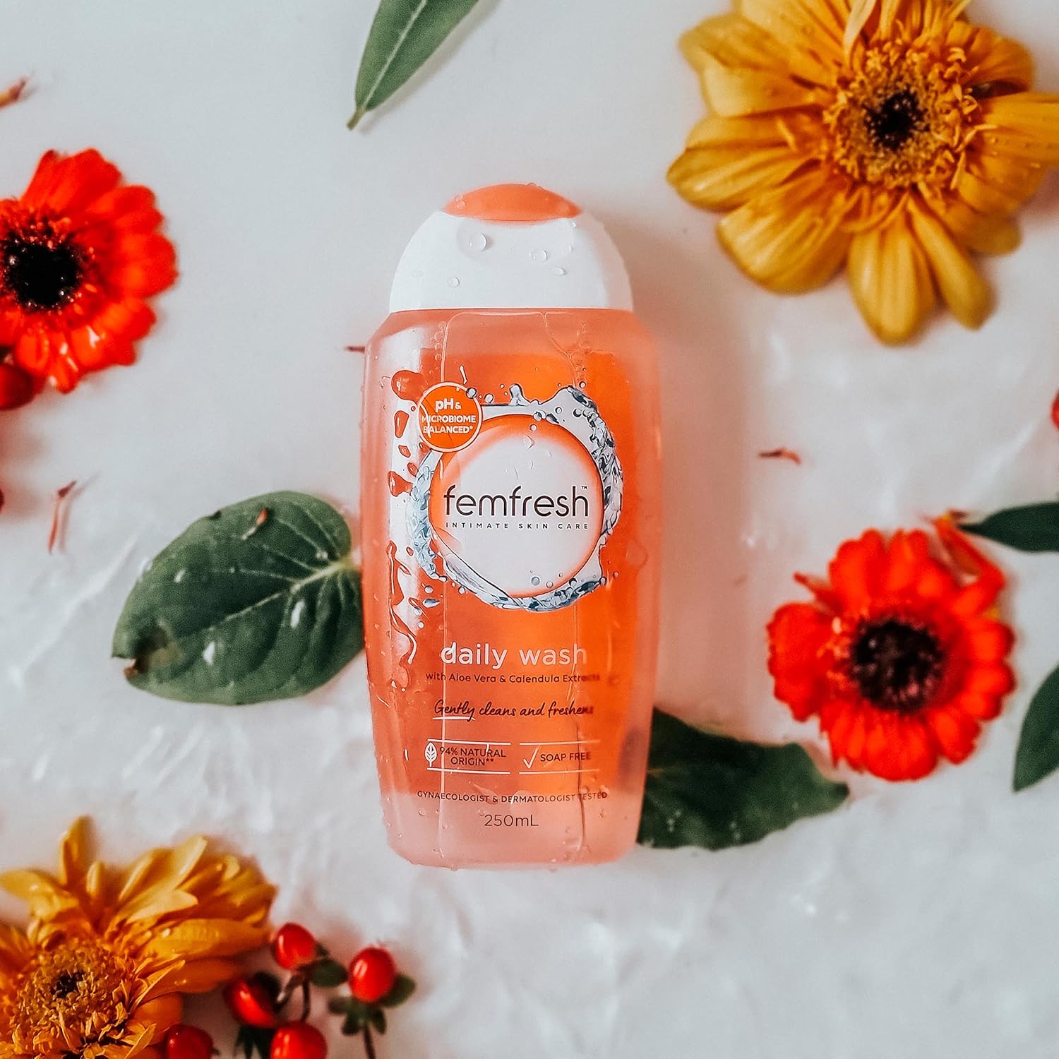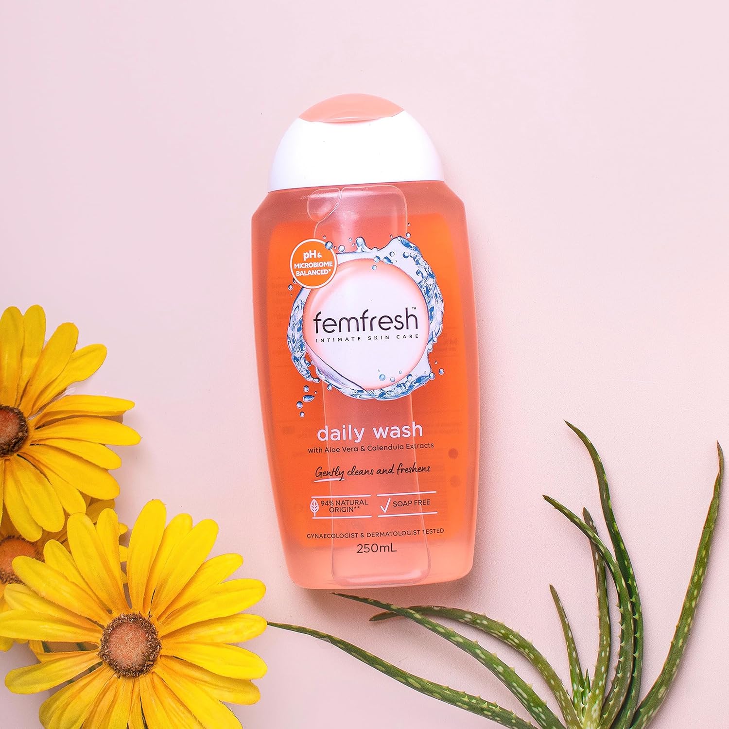 Femfresh Daily Intimate Wash – 250ml, pH & Microbiome Balanced, With Aloe Vera & Calendula Extracts, 94% Natural Origin Ingredients, Hypoallergenic & Soap-Free, Gentle Feminine Body Wash for Freshness