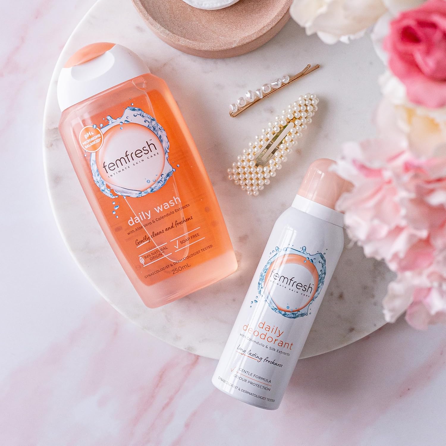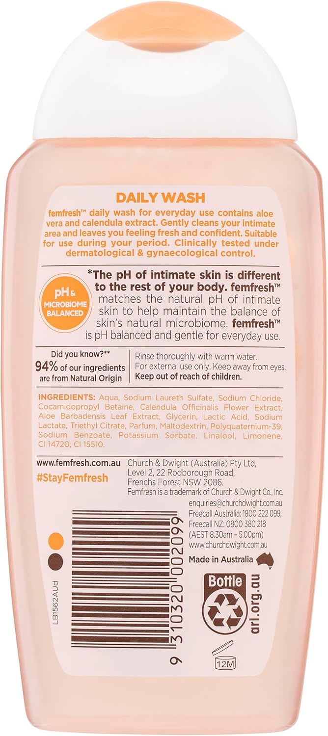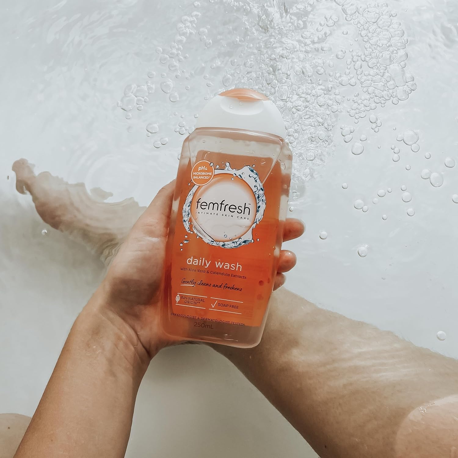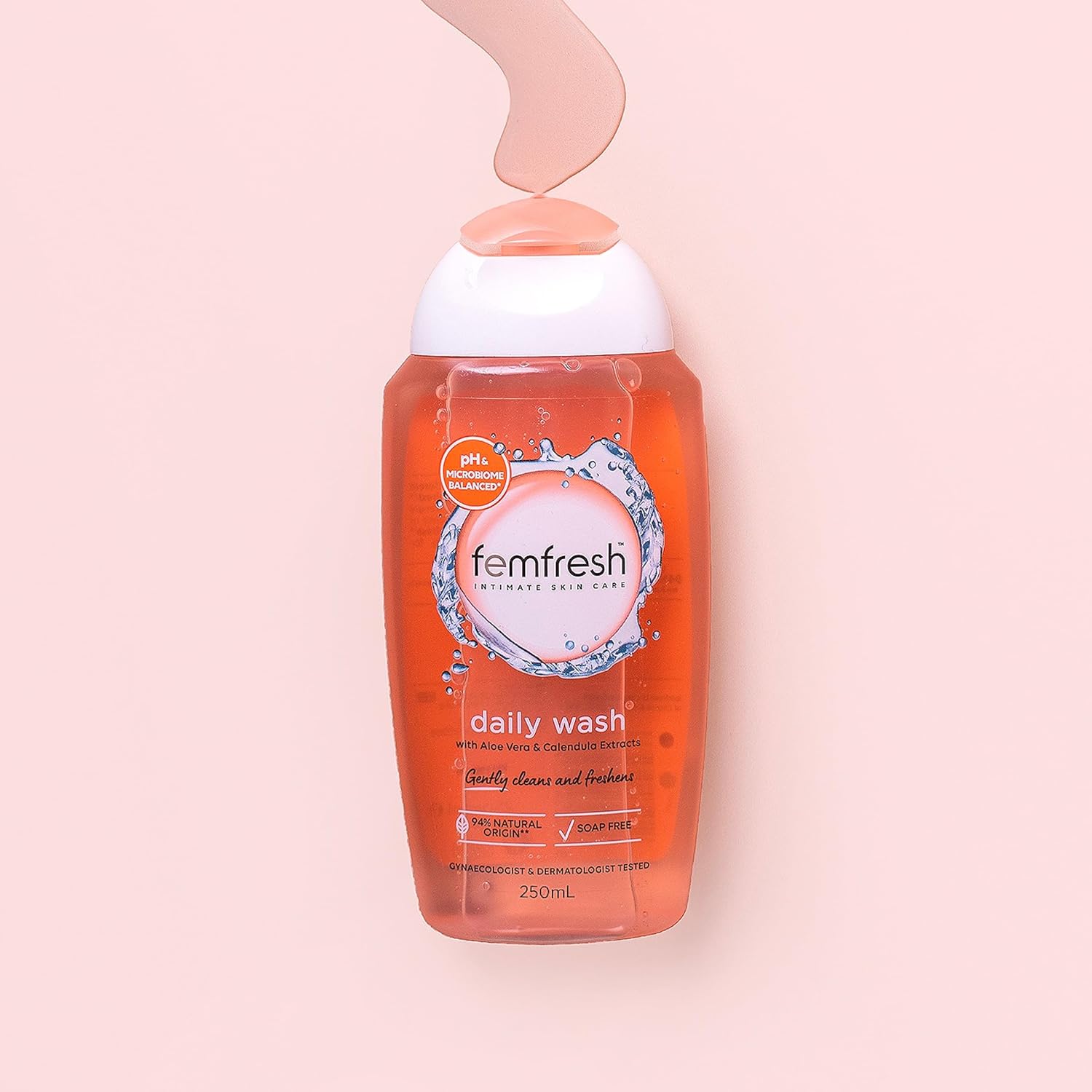 Femfresh Daily Intimate Wash – 250ml, pH & Microbiome Balanced, With Aloe Vera & Calendula Extracts, 94% Natural Origin Ingredients, Hypoallergenic & Soap-Free, Gentle Feminine Body Wash for Freshness