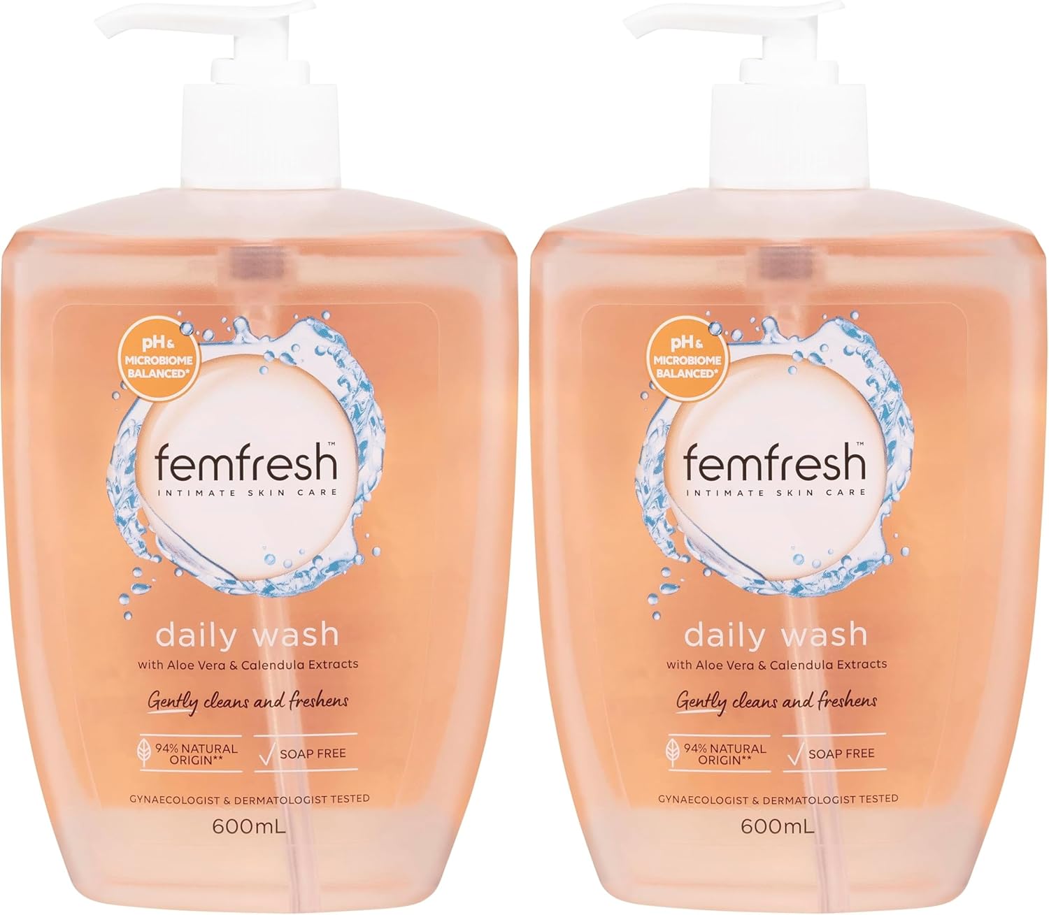 Femfresh Daily Intimate Wash 600ml – pH & Microbiome Balanced, With Aloe Vera & Calendula Extracts, 94% Natural Origin Ingredients, Hypoallergenic & Soap-Free, Gentle Feminine Wash for Freshness