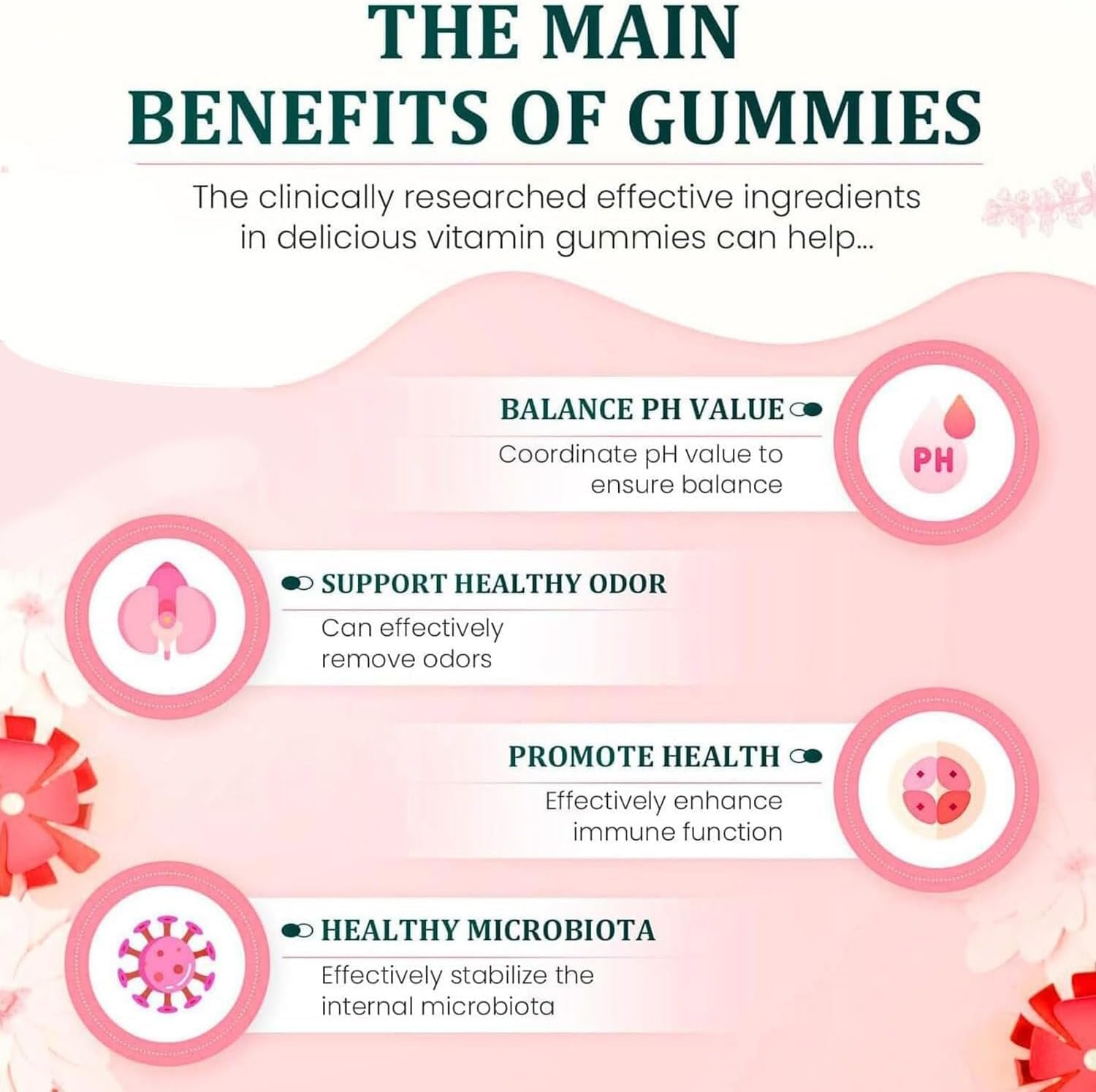 Feminine Balance Gummies for Daily Wellness with Probiotics & Multivitamins, Vegan Hawaiian Pineapple Flavor, Gluten Free, 60 Gummies.
