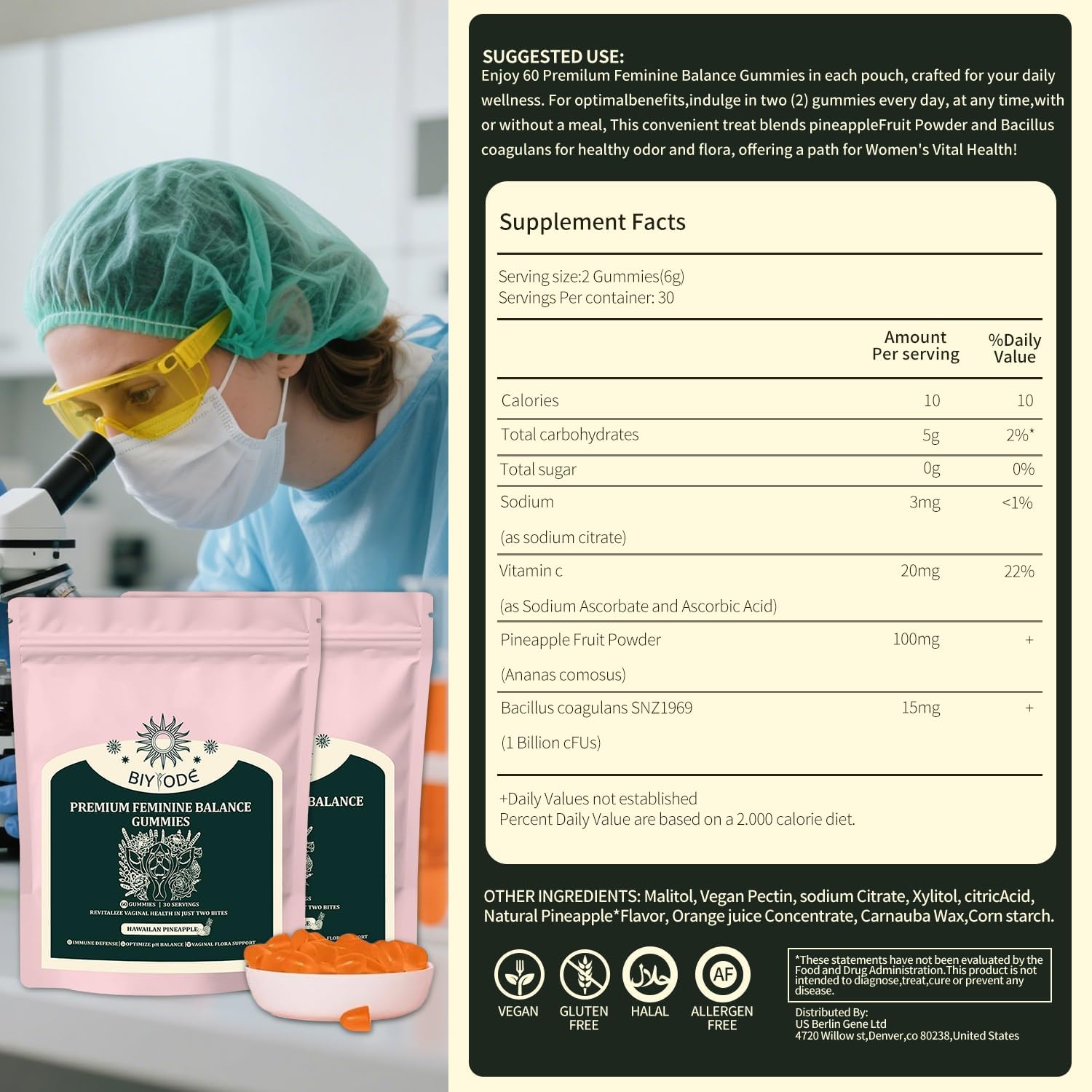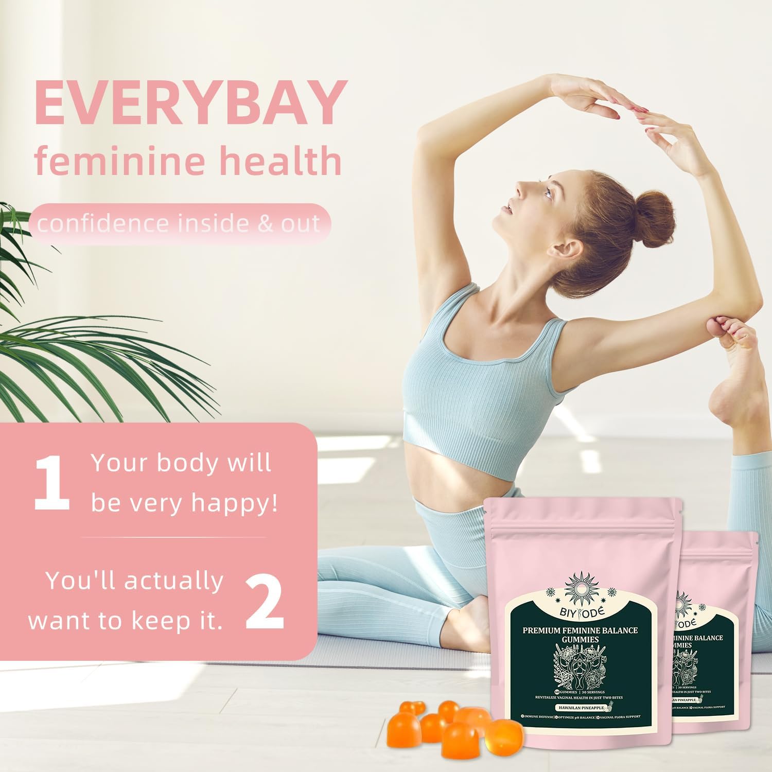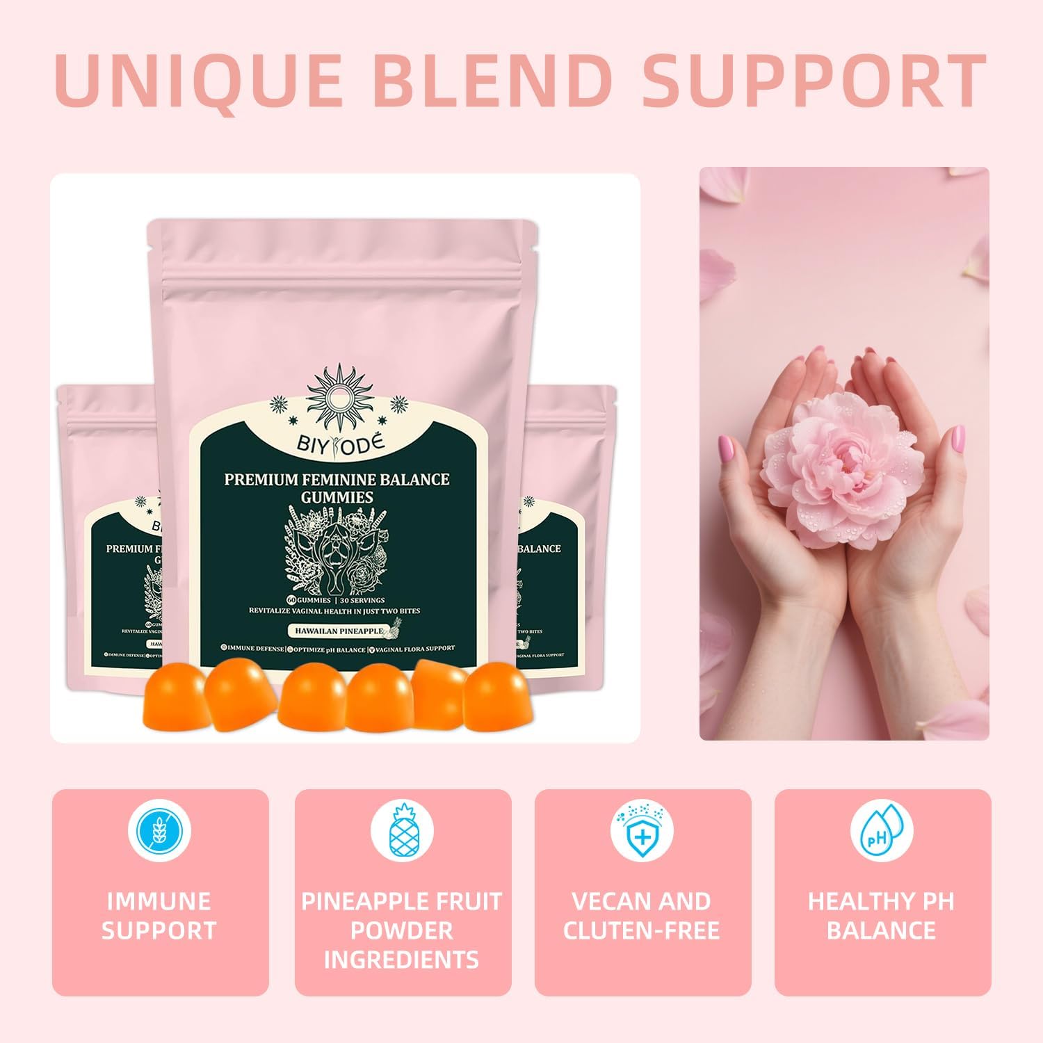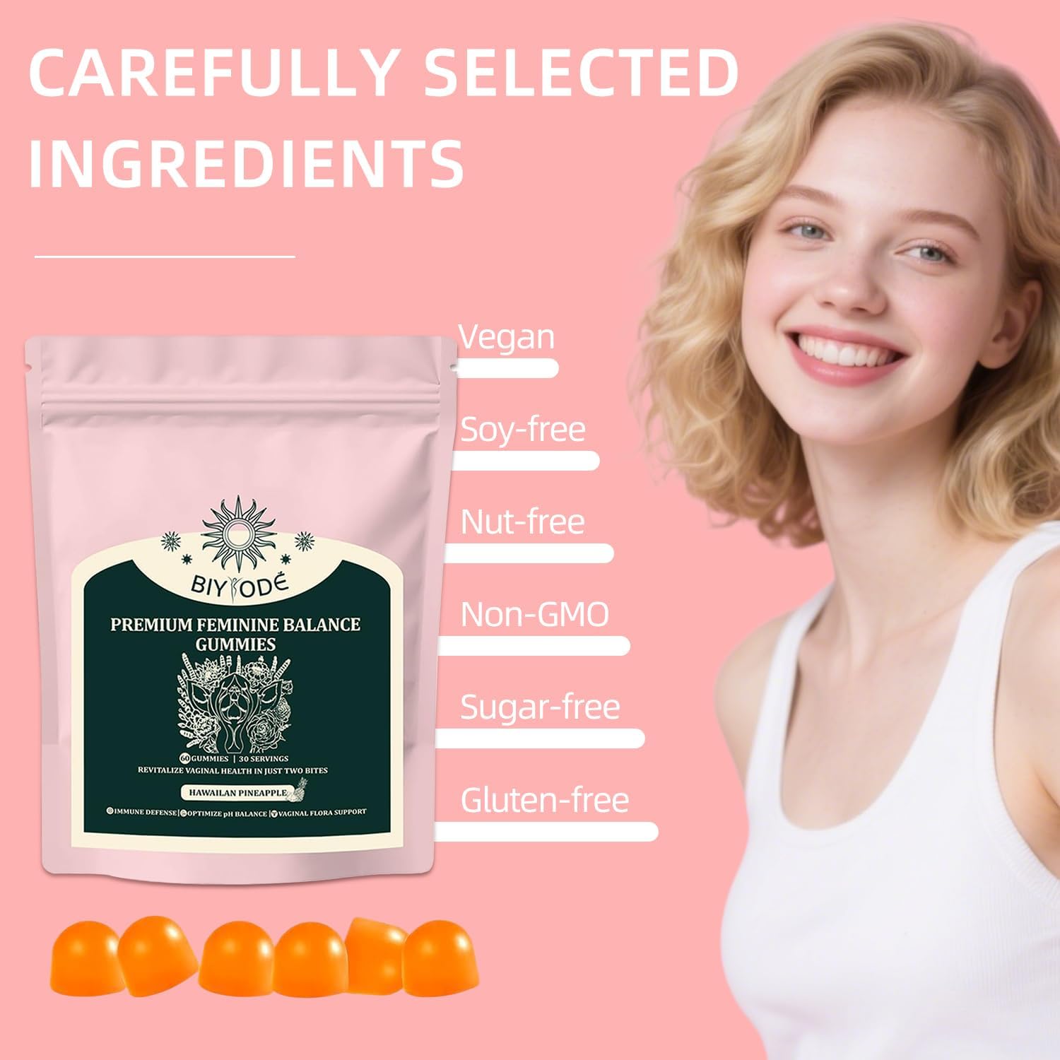 Feminine Balance Gummies-Probiotic for Women, pH Balance-Vegan& Low Sugar&Gluten-Free – Pineapple – 60 Gummies