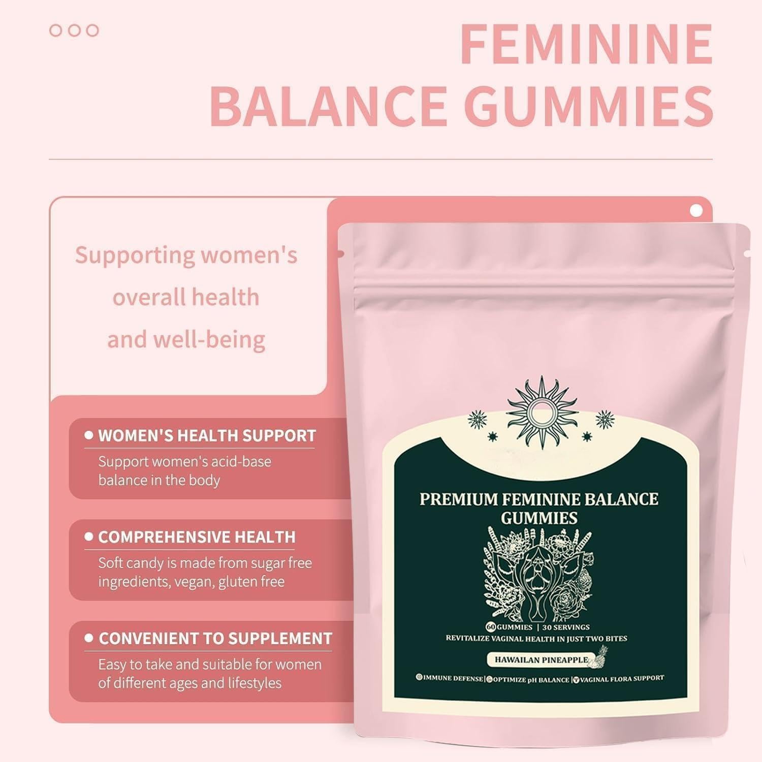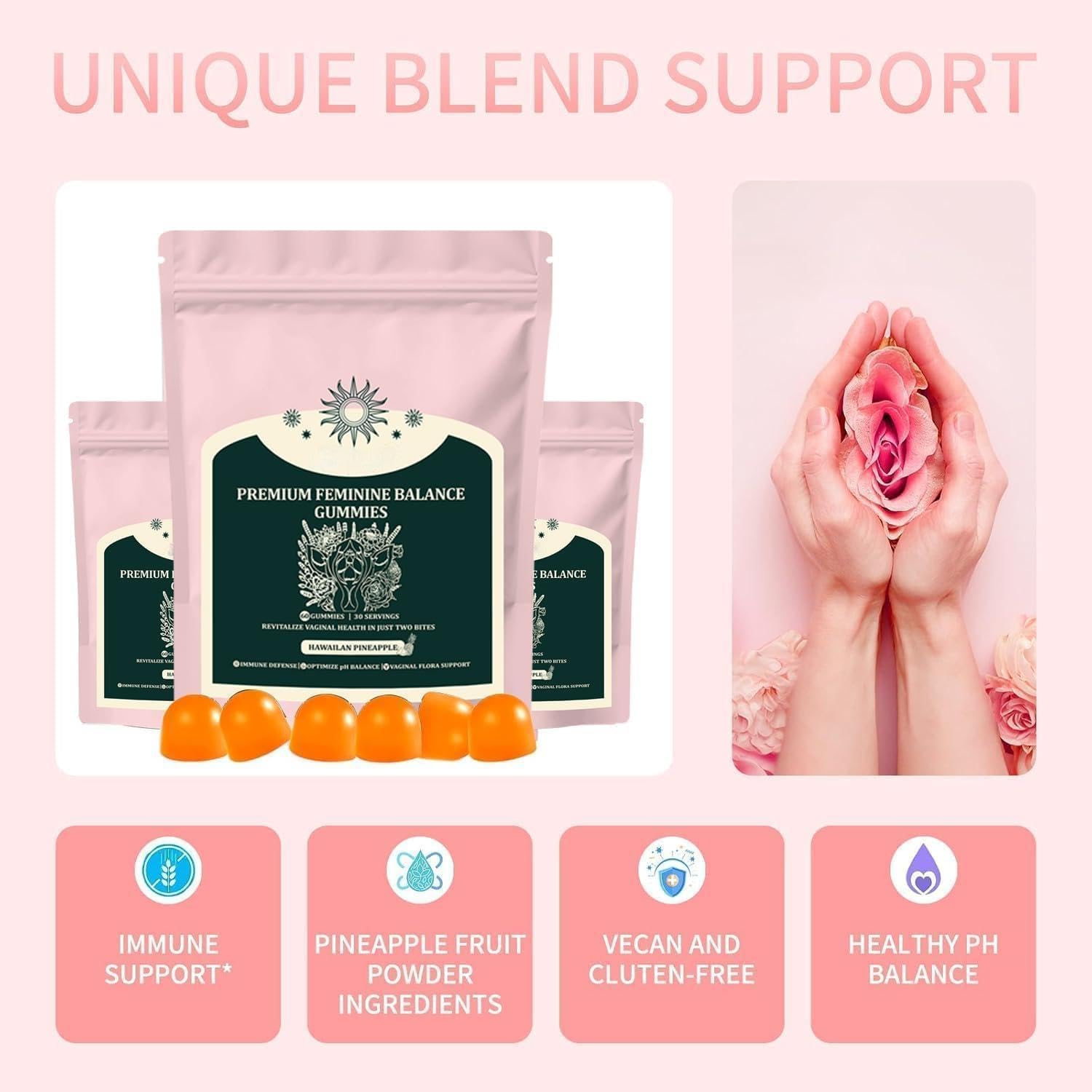 Feminine Balance Gummies – Vaginal Probiotics & Probiotics for Women – Vegan, Low Sugar, Gluten-Free – Pineapple Flavor – 60 Gummie