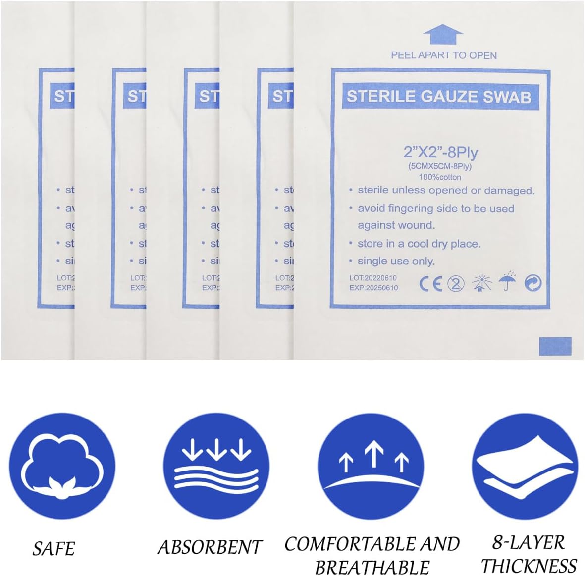 Healeved 30pcs Sterile Gauze Pads are designed for effective wound care at home or outdoors. Each pad measures 2x2 inches and is made from ultra-absorbent, non-woven cotton, ensuring optimal moisture control. The breathable mesh fabric promotes ventilation, allowing your skin to breathe and aiding in faster healing. These pads are ideal for minor cuts, scrapes, and other injuries.