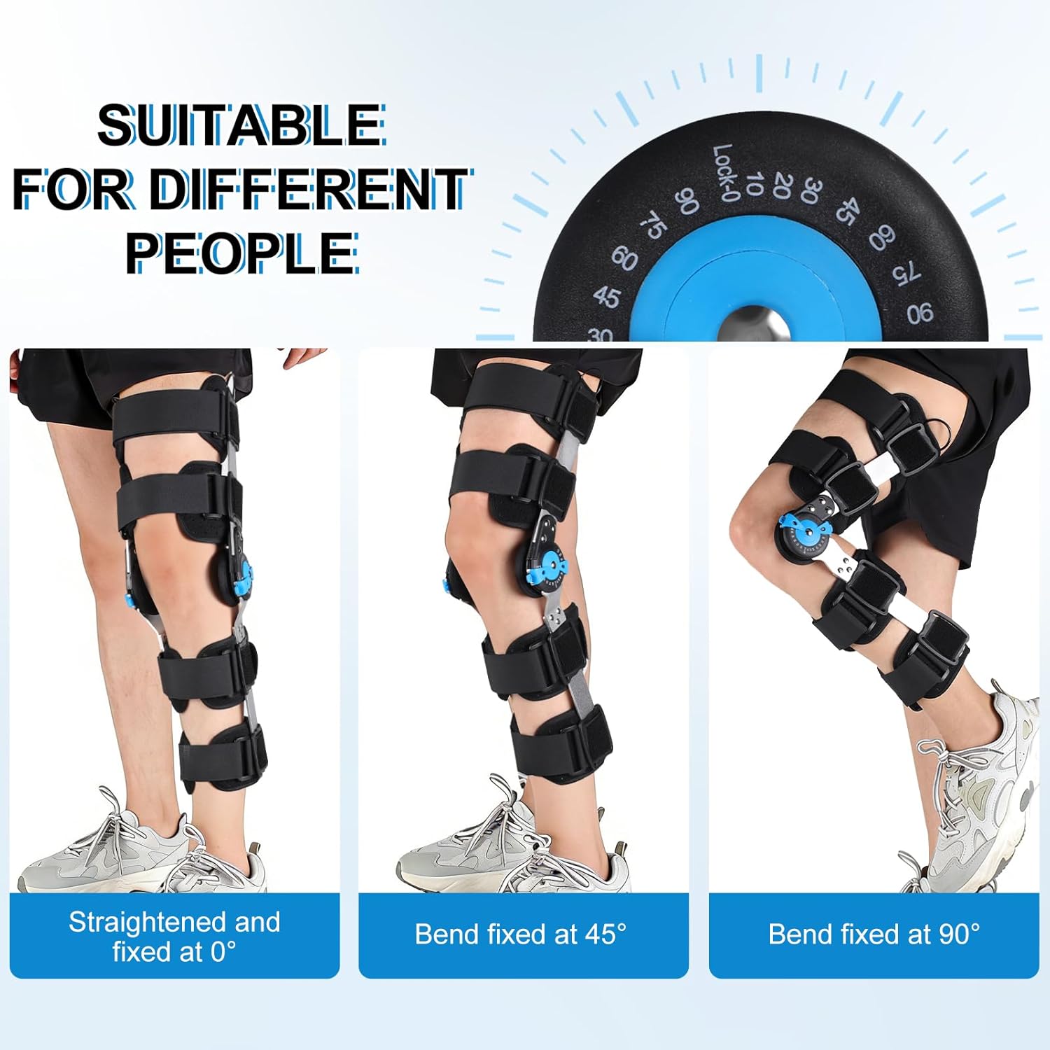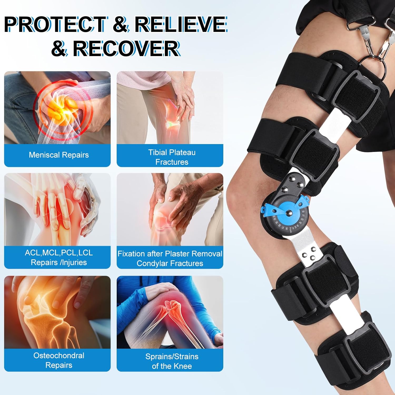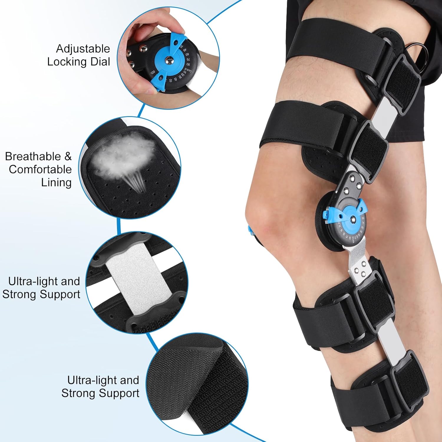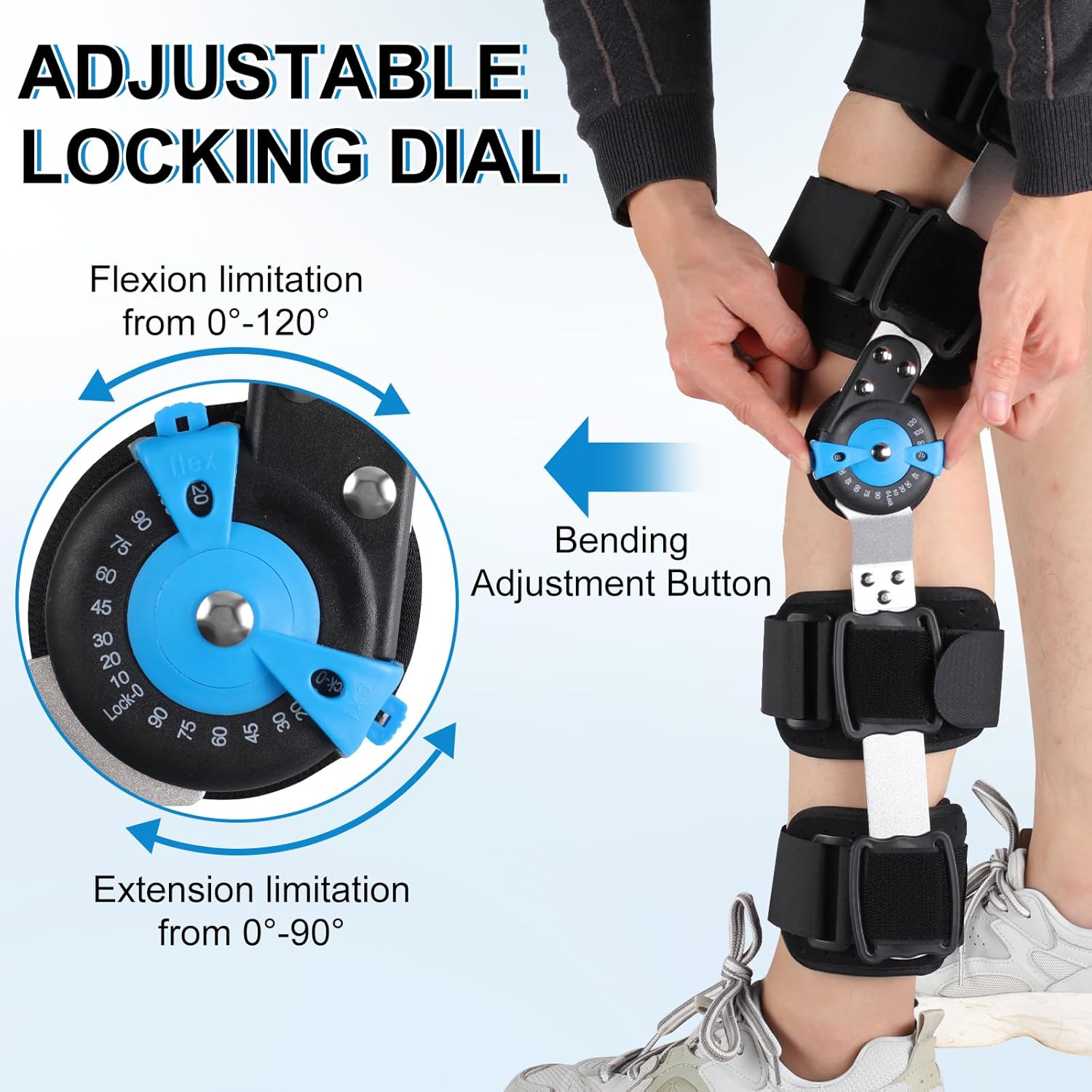 Hinged ROM Knee Brace with Adjustable Locking Dial & Side Stabilizers – Post Op Knee Support for ACL, PCL, MCL Injury, Meniscus Tear Recovery – Universal Fit Stabilizer for Men & Women, Left or Right Leg