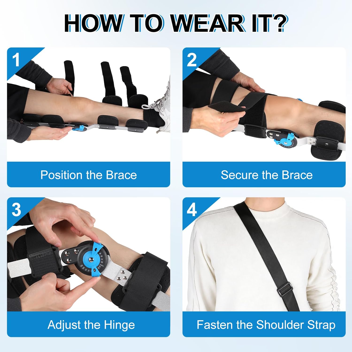 The adjustable locking dial allows you or your practitioner to set a specific range of motion from 0° extension to 120° flexion for controlled rehabilitation.