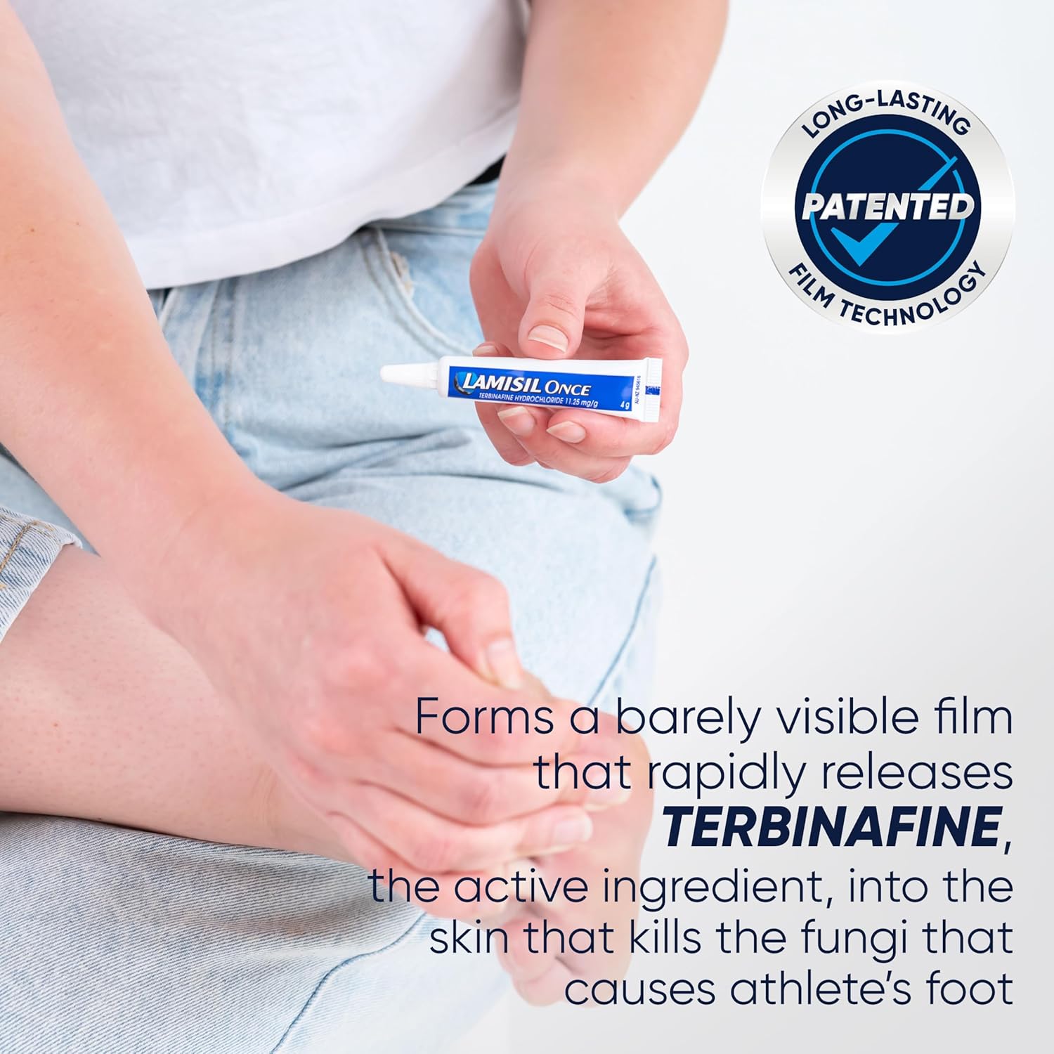 Lamisil Once is a clinically proven treatment designed specifically for athlete’s foot. This antifungal solution effectively relieves symptoms such as itching, burning, and cracking. With a single dose, it not only addresses the current infection but also helps protect against recurrence for up to three months. The product comes in a convenient 4g package, making it easy to apply. Here are some key features: