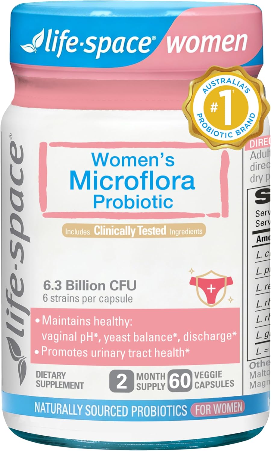 Life-Space Women's Microflora Probiotic is designed to support women's health with a focus on the vaginal microbiome. This premium formula contains 6 strains of beneficial bacteria, including Lactobacillus crispatus, which is essential for maintaining a healthy vaginal environment. The product dimensions are 5.4 x 8.6 x 5.4 cm, and it weighs 138.8 grams. It was first made available on February 14, 2019, by Evolution Health.