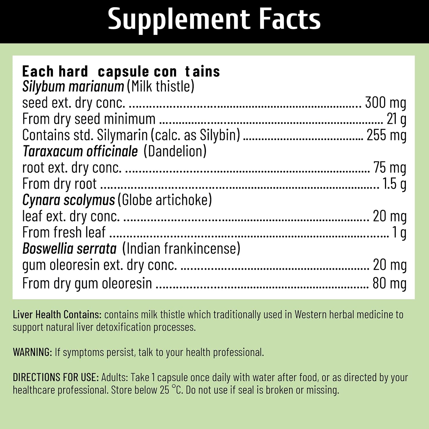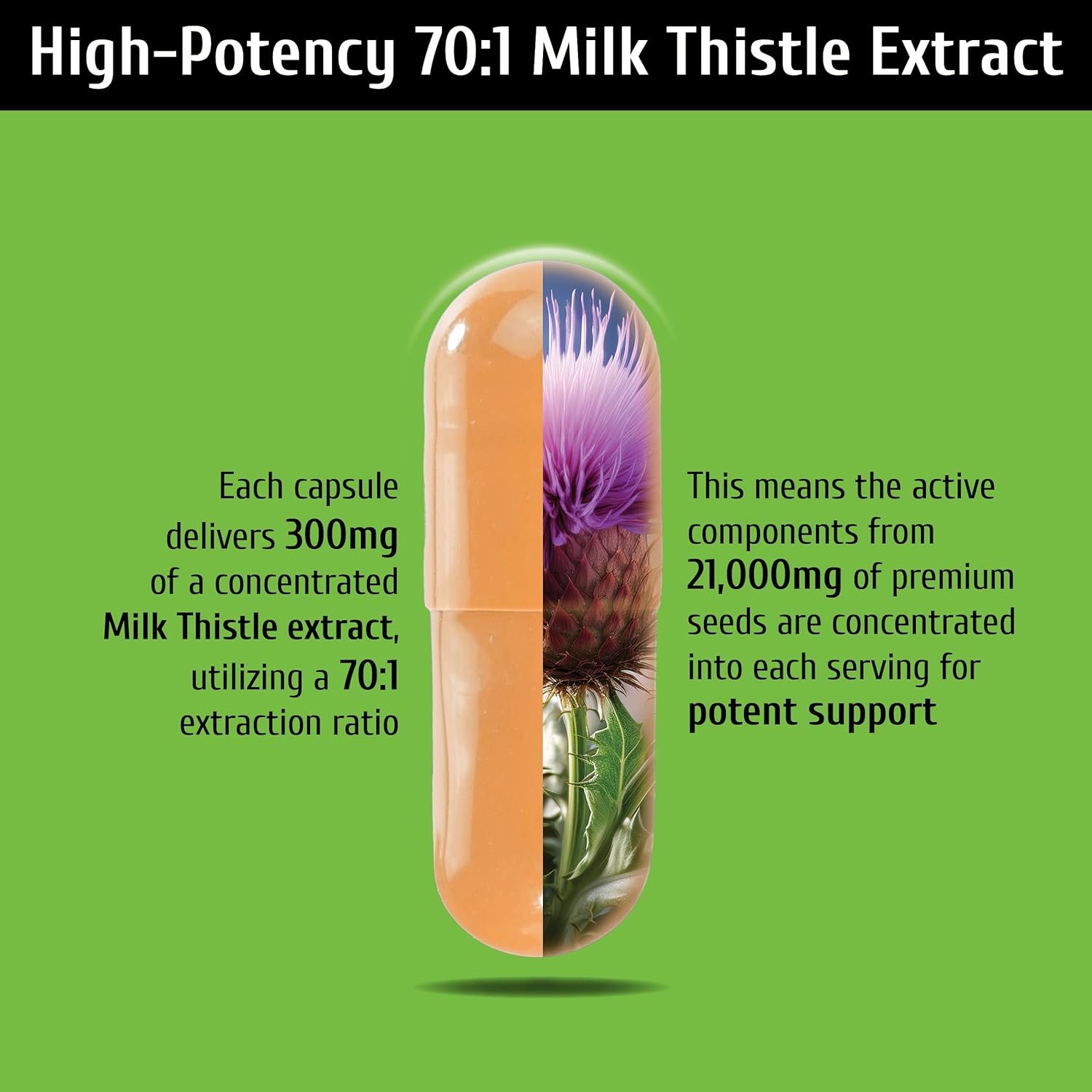 Liver Support, Milk Thistle 300mg (70:1 Extract from 21,000mg Seed), with Dandelion, 85% Silymarin, Artichoke & Frankincense, Once-Daily Capsule 60 Count