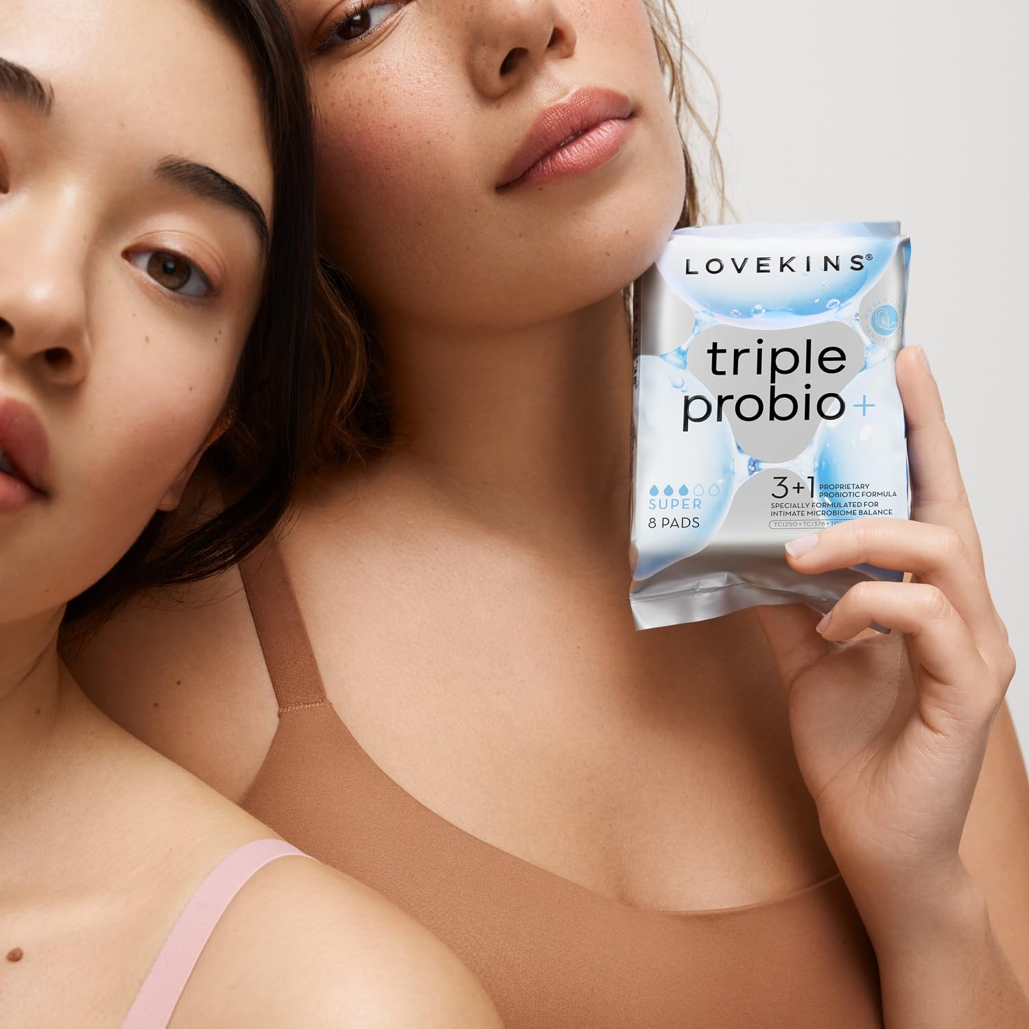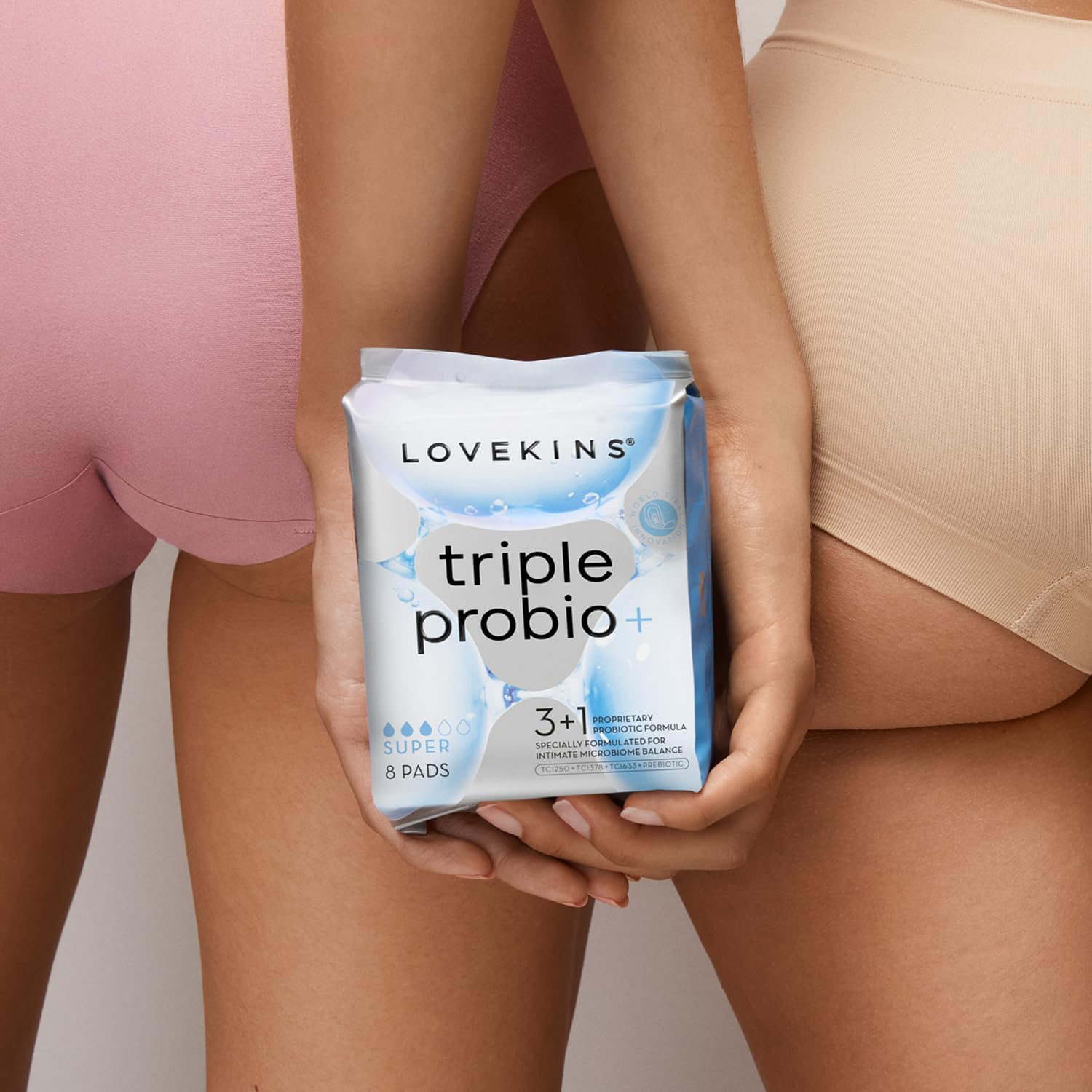 Lovekins Triple ProBio Super Pads, Heavy Flow, 45x Absorption, Ultra-Thin Design