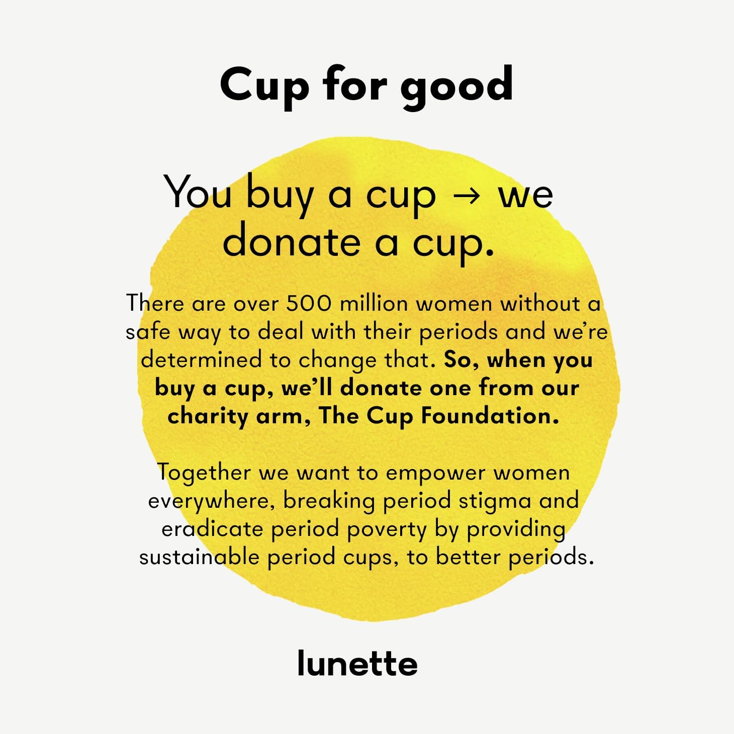 With every purchase, Lunette donates a cup to those in need, supporting the fight against period poverty. This initiative reflects their commitment to social responsibility and education.