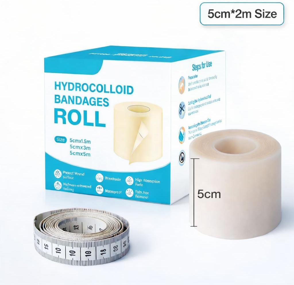 The Medical-Grade Hydrocolloid Roll is designed for effective wound care, particularly for acne and blisters. This roll measures 5cm x 2m, allowing you to cut it to your desired size for various applications. The self-adhesive nature ensures it stays in place while providing a waterproof barrier, which helps keep the wound clean and protected. Its ultra-absorbent properties make it suitable for managing exudate from wounds.