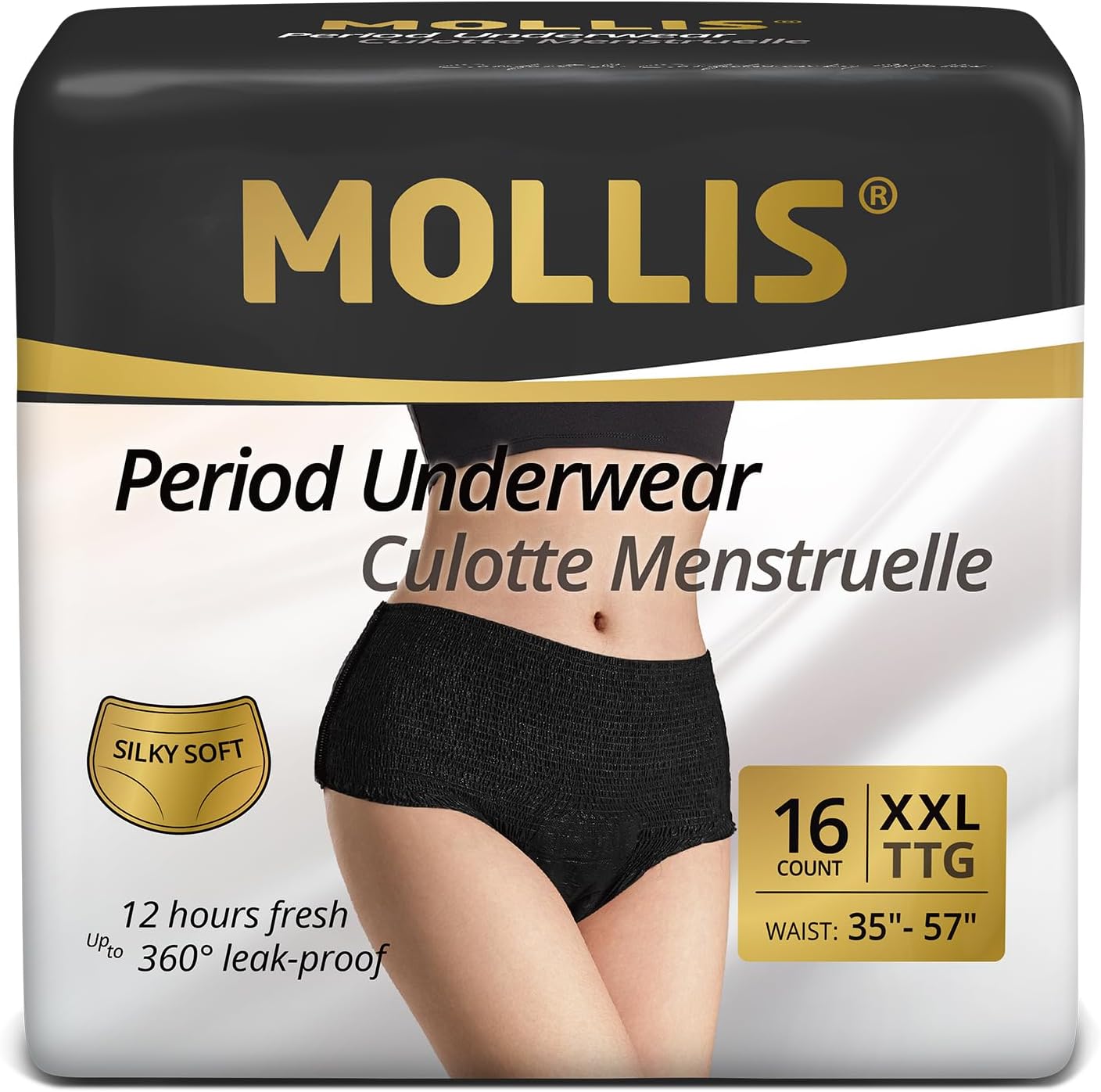 MOLLIS Disposable Period Underwear for Women, Postpartum Panties, Maternity Knickers Heavy Flow Leak Proof, Black, XXlarge, 16 Count