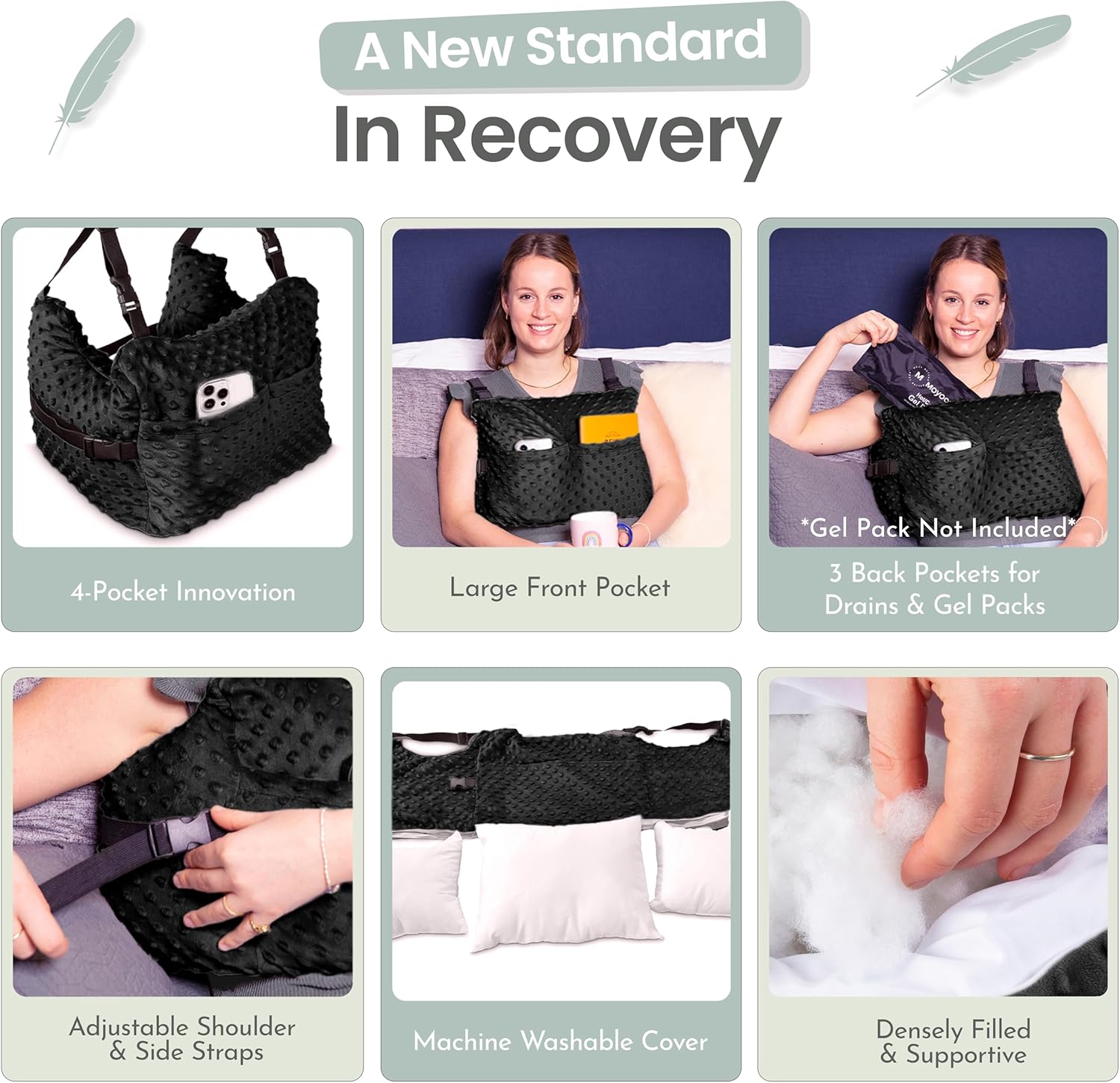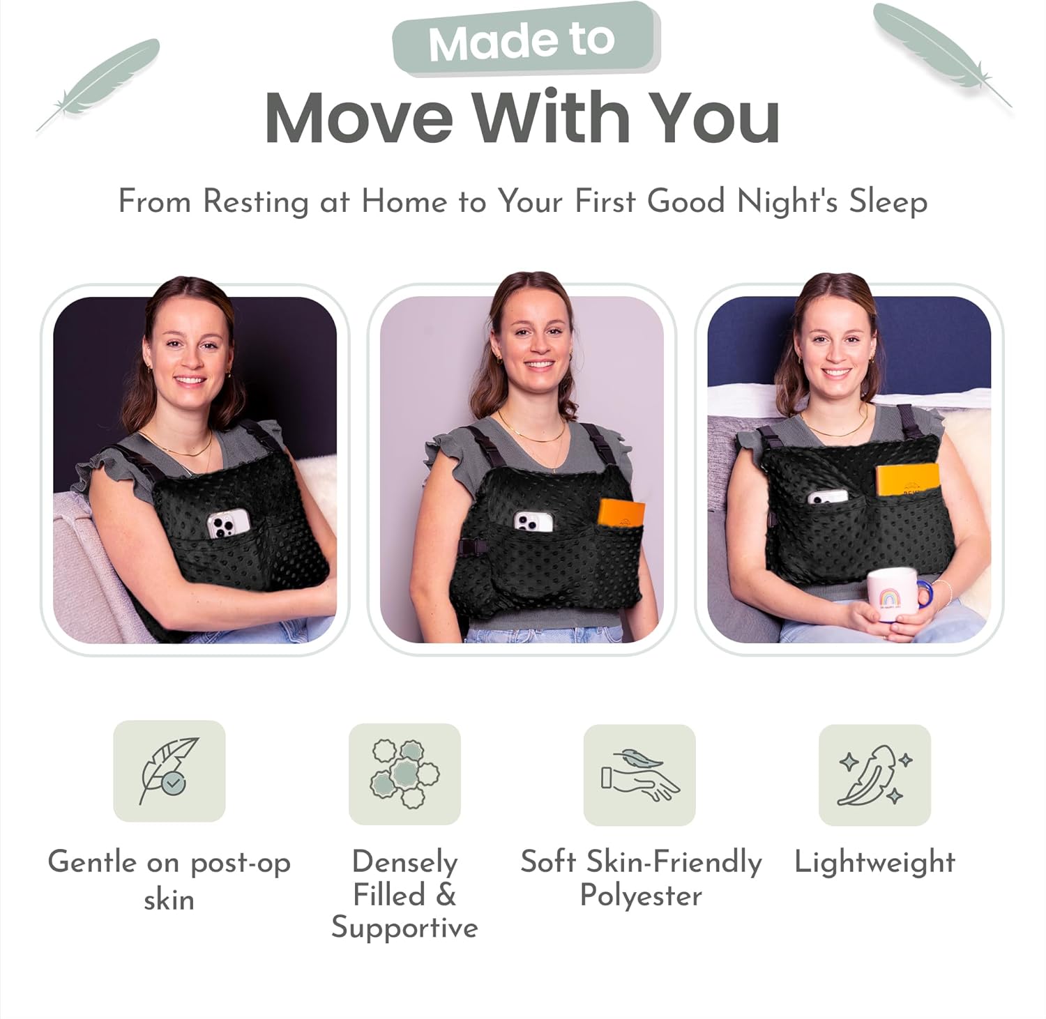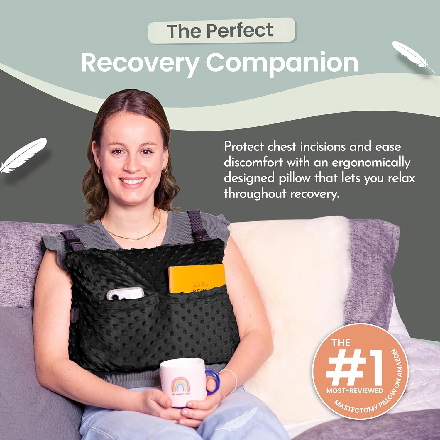 MOYOAMA Post Mastectomy Pillow – Recovery After Breast Cancer Surgery, Breast Augmentation – Lightweight Post Surgery Pillow with 4 Built-in Pockets to Support Healing – Breast Cancer Gifts for Women